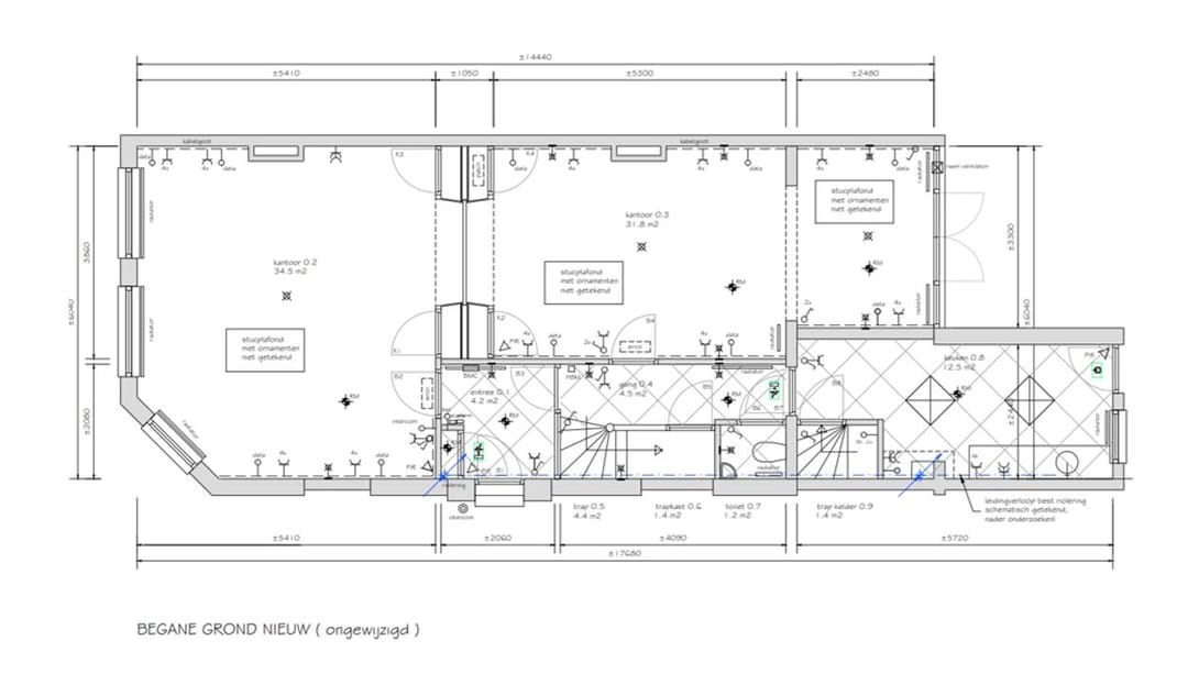 Met ca. 85 m² op de parterre, beschik je over een praktisch en representatief vloeroppervlak, dat bovendien makkelijk is in te delen naar eigen wens. Denk aan open werkplekken, een inspirerende vergaderruimte of een fijne ontvangstruimte voor klanten: alles kan! De kenmerkende hoge plafonds, authentieke details en royale raampartijen zorgen bovendien voor een lichte, uitnodigende sfeer – perfect voor productieve dagen en inspirerende brainstormsessies.