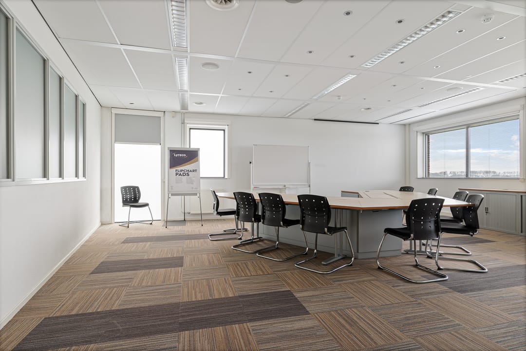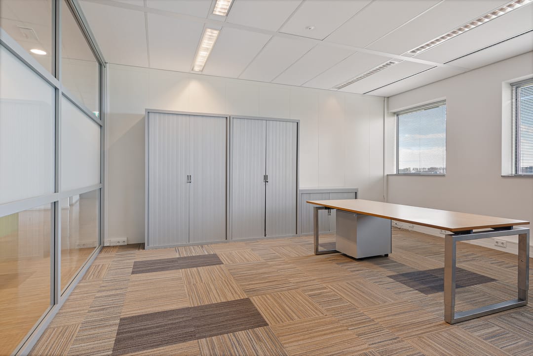 Te huur is de tweede verdieping van circa 591 m² v.v.o. (inclusief aandeel algemene ruimten). Medegebruik van receptie (optioneel), kantine en grote vergaderruimte op de begane grond is inbegrepen. Gebruik van de fitnessruimte is mogelijk in overleg en tegen nader te bepalen kosten.