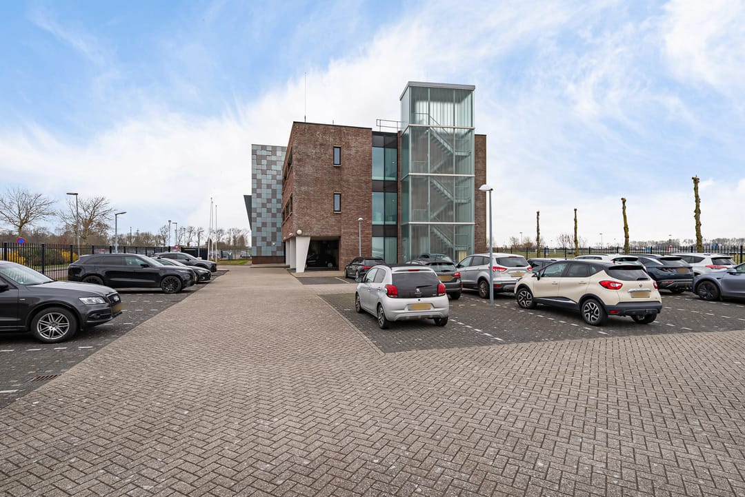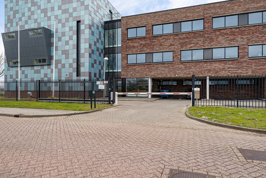 Bij het kantoorgebouw behoort een eigen parkeerterrein met slagboom. Het aantal af te nemen parkeerplaatsen wordt in overleg vastgesteld.