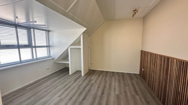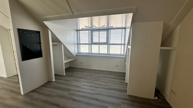 De ruimte is voorzien van een betonnen vloer met een pvc vloer en vloerverwarming. Veel lichtpartijen aan de voorzijde en twee dakkapellen aan de achterzijde.