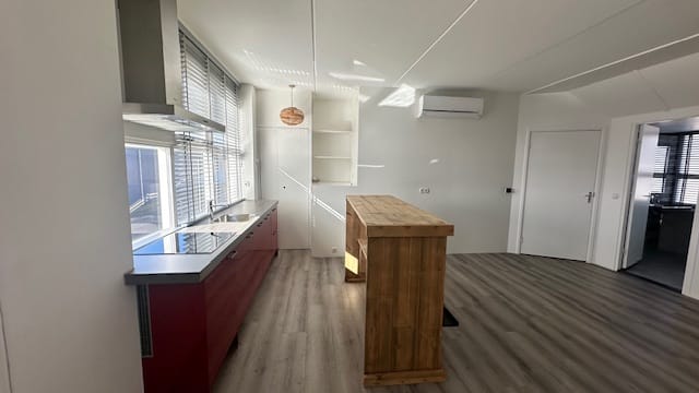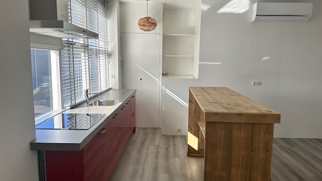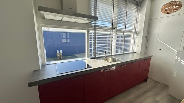 Je kan de ruimte indelen zoals je wilt. Wat erbij inbegrepen is is een complete keuken met inductiekookplaat, afzuigkap, vaatwasser, koelkast en vriezer.