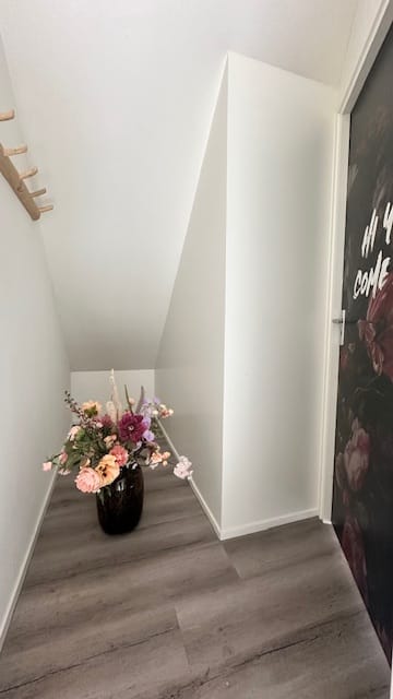 Je kantoor betreedt je via een gezamenlijke entree en dan direct met een trap naar de verdieping.