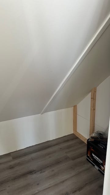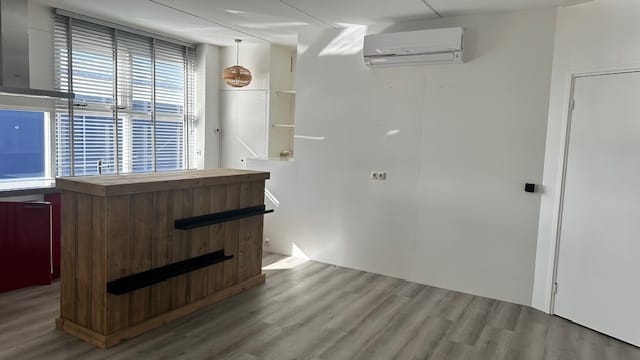 De wanden zijn gestuukt. Airco kan zowel koelen als verwarmen. Kortom alleen nog internet aanvragen en starten.
