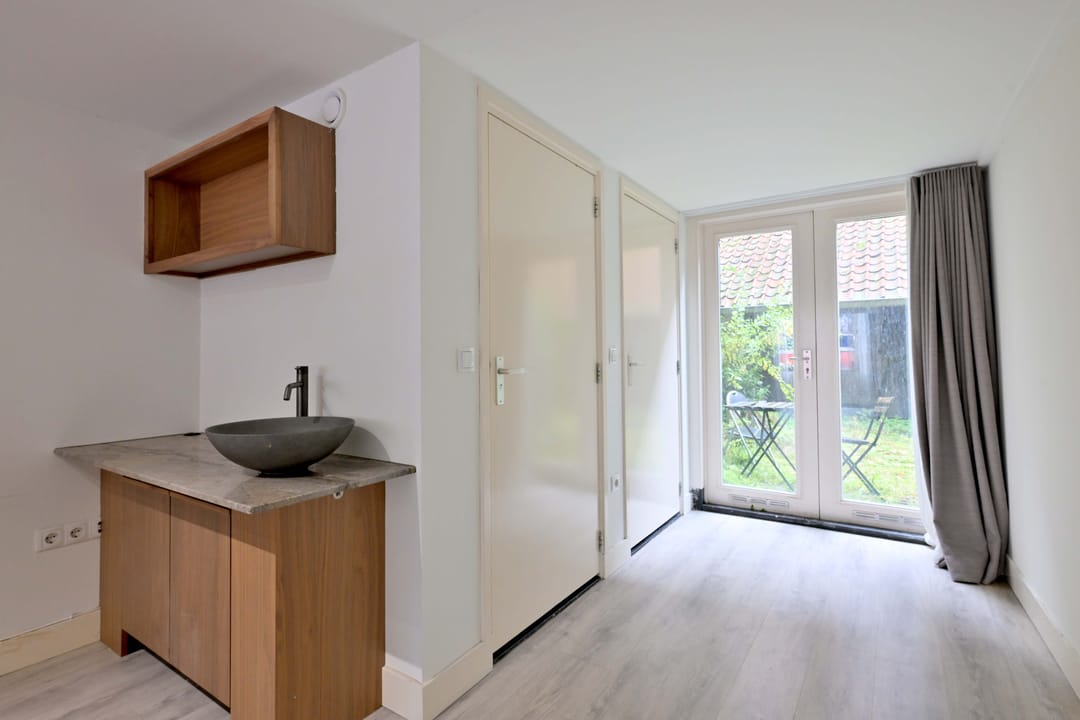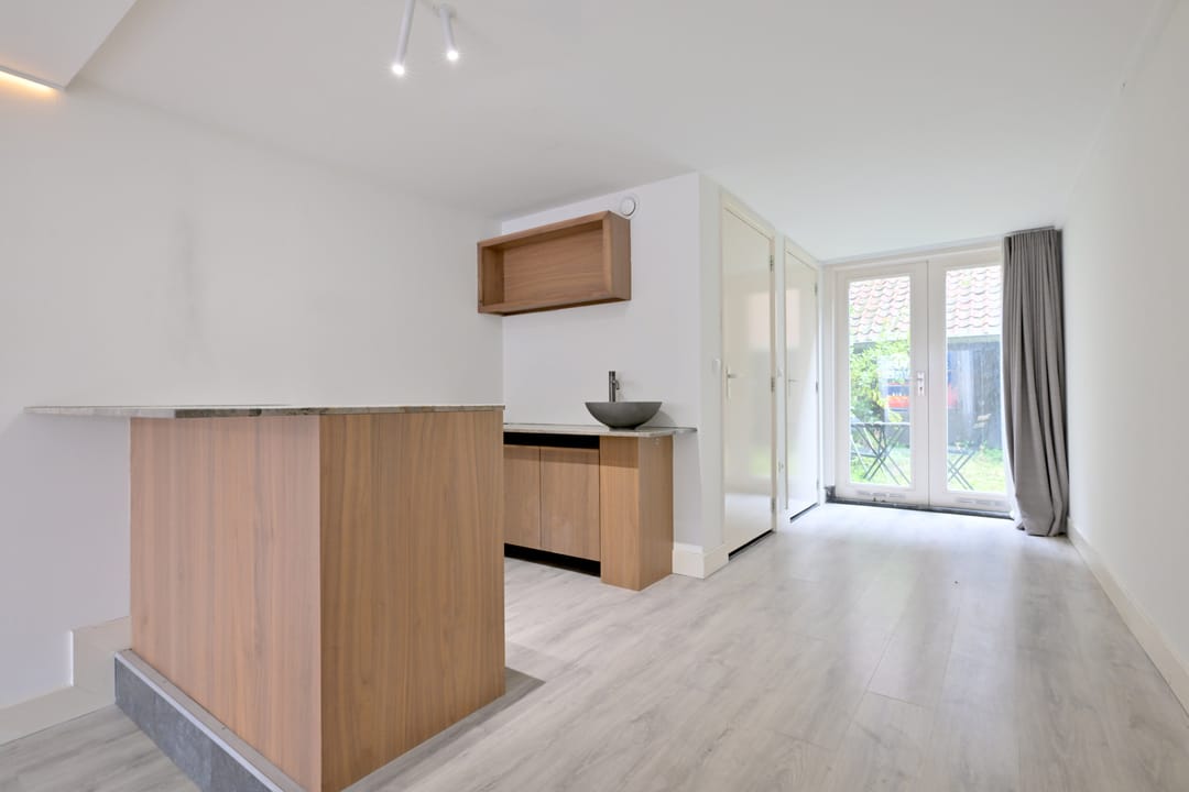 De begane grond (ca. 45 m²) beschikt over entree, werkruimte, toilet en technische ruimte, de 1e verdieping (ca. 50 m²) beschikt over een tweetal vertrekken waarvan één is voorzien van een open keuken met diverse inbouwapparatuur. De andere kamer beschikt over inbouwkasten en toegang tot een badkamer.
