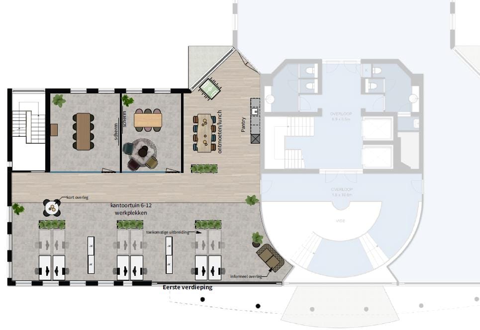 - 1e verdieping | twee kantoorruimtes van ca. 116 m²