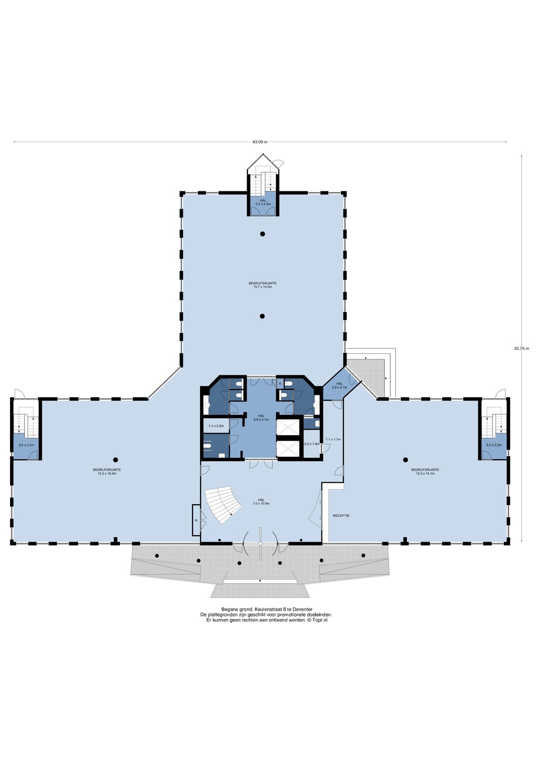 Deze informatie is met zorg door ons samengesteld, echter aanvaarden wij geen aansprakelijkheid voor de juistheid en volledigheid hiervan. Aan de informatie kunnen geen rechten worden ontleend. Huurder/koper wordt in dit verband geattendeerd op zijn wettelijke onderzoeksplicht als huurder/koper naar alle zaken die voor hem bij aanhuur of aankoop van belang zijn. Daarom is het voor huurder/koper van belang om de informatie zoals hier verstrekt is, goed te controleren of hiervoor een deskundige in te schakelen, zoals een eigen bedrijfsmakelaar en/of -adviseur. Eventuele transacties dienen ter goedkeuring voorgelegd te worden aan opdrachtgever c.q. eigenaar van het gebouw. Tot deze goedkeuring verleend is, zijn alle uitgebrachte aanbiedingen geheel vrijblijvend