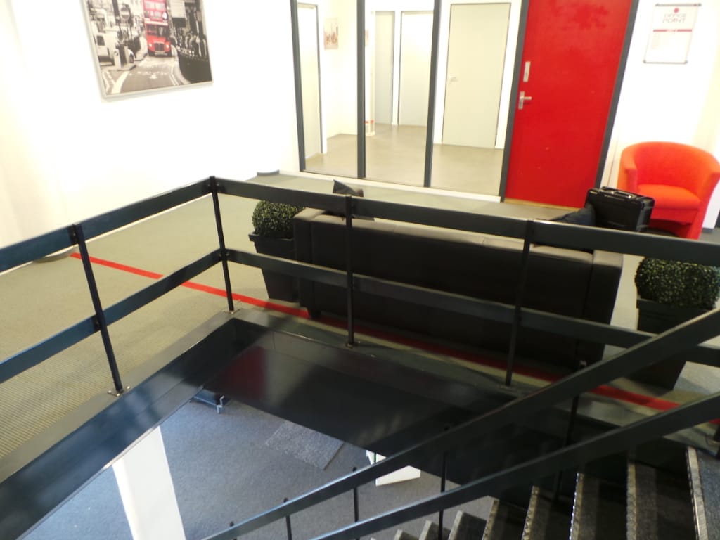 Entree, toegang tot diverse kantoor units variërend in grootte met pantry en toiletgroepen.