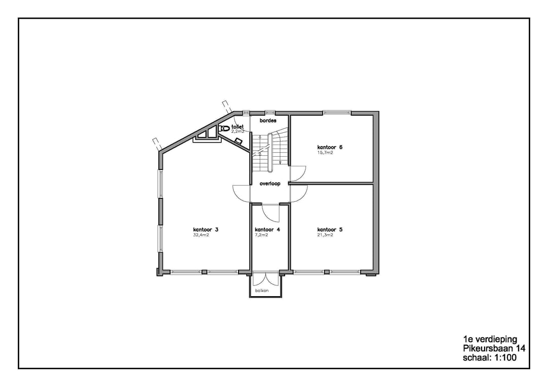 Kamer 3, gelegen op de eerste verdieping (hoek) en heeft een oppervlakte van ca. 32 m²