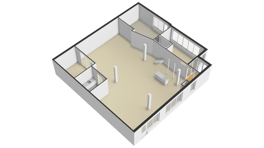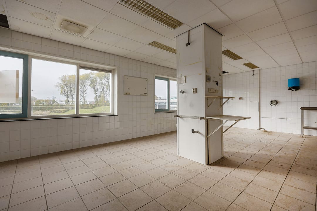 - Mechanische ventilatie, overheaddeuren, krachtstroom, betonvloer, toilet, inbouwarmaturen en te openen ramen