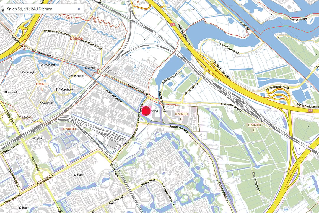 Sniep 51 ligt in een dynamisch bedrijvengebied in Diemen, grenzend aan Amsterdam.