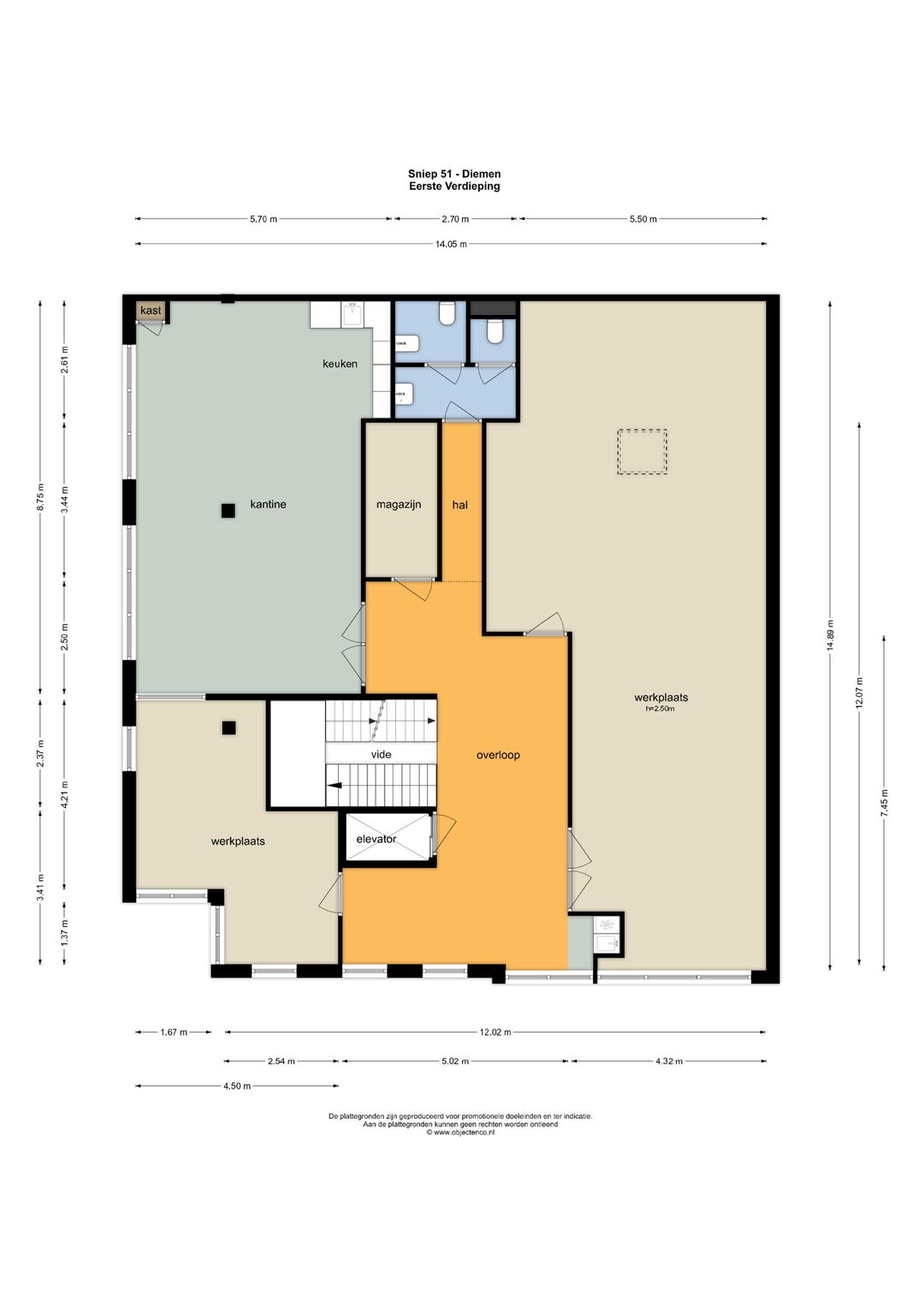 Eigen entree met hal en toegang tot een kantoor en bedrijfsruimte. Op de begane grond bevindt zich een goederenlift en een trappenhuis naar de eerste en tweede etage.