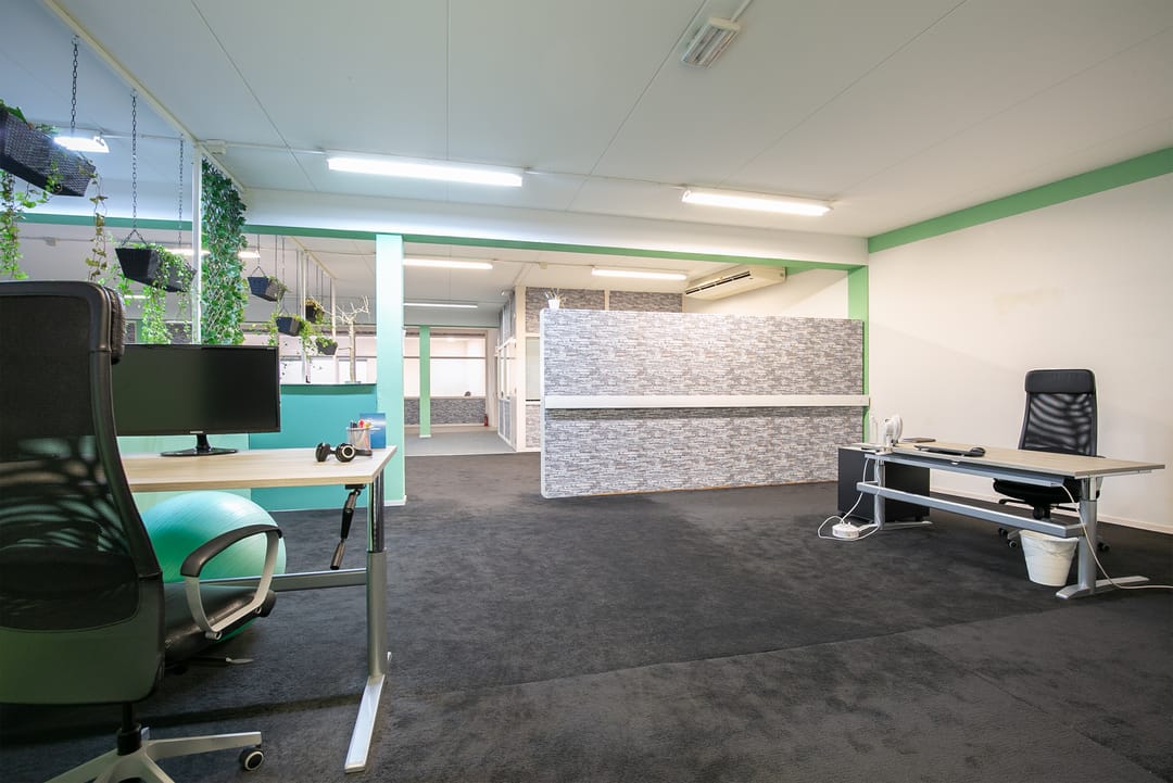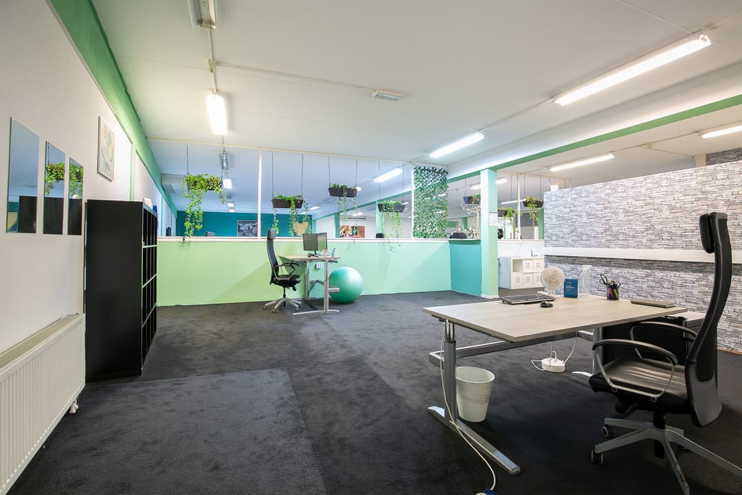 De kantoorruimte is voorzien van een kantoortuin met een speelse indeling en 3 separate spreekkamers/kantoorruimtes.