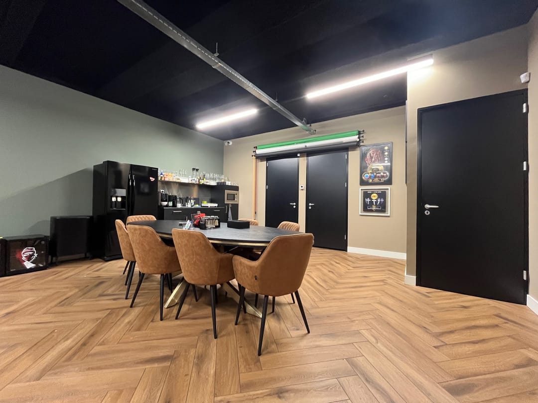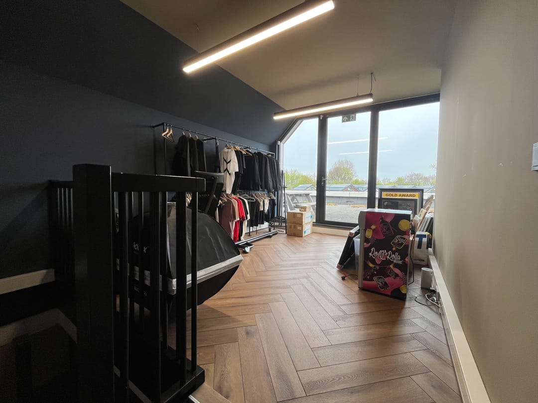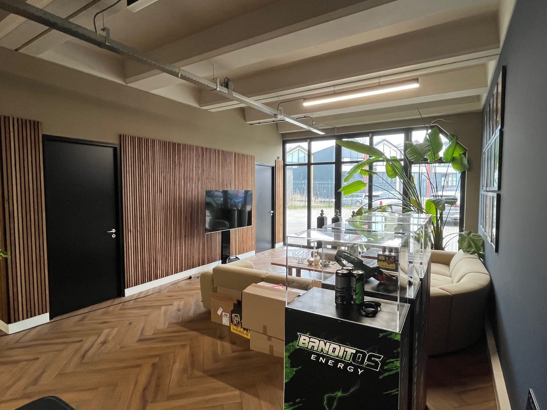 De hoogwaardige puien met openslaande harmonicadeuren op de begane grond geven de bedrijfsunit niet alleen een fraaie en representatieve uitstraling, maar zijn ook heel praktisch en maken dat de bedrijfsunit voor veel uiteenlopende functies te gebruiken is.