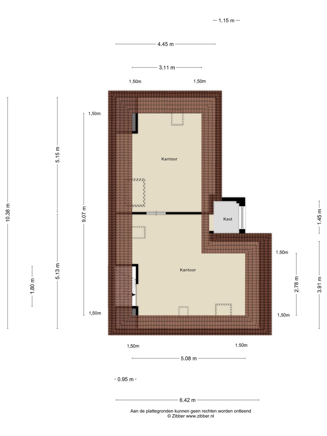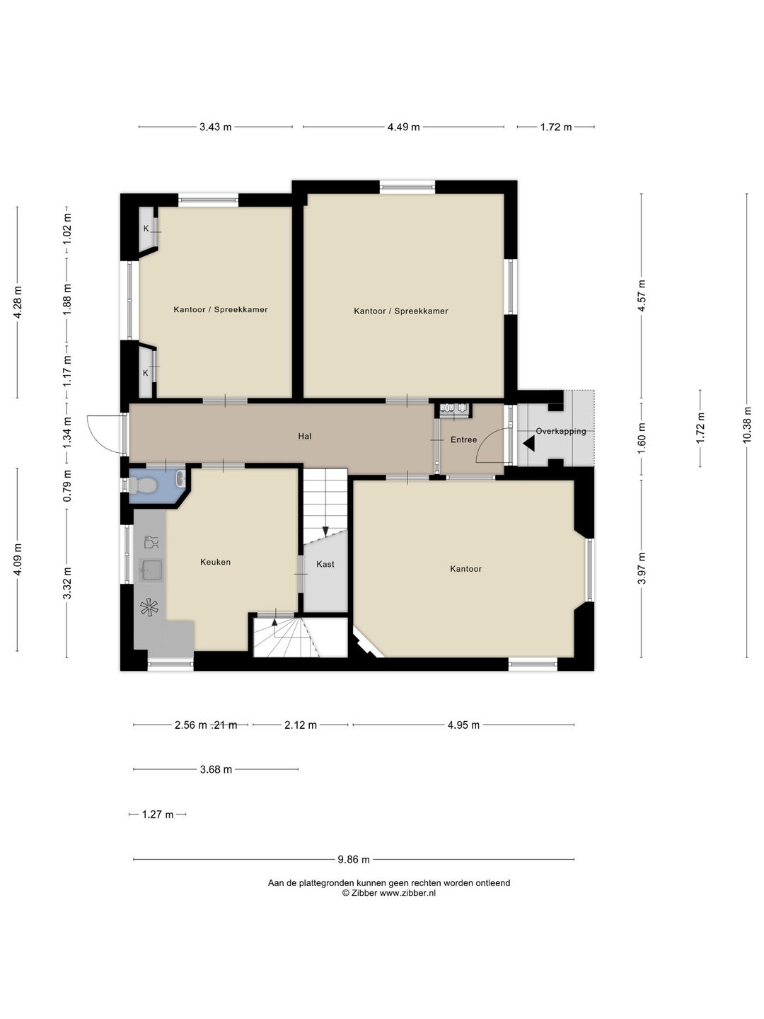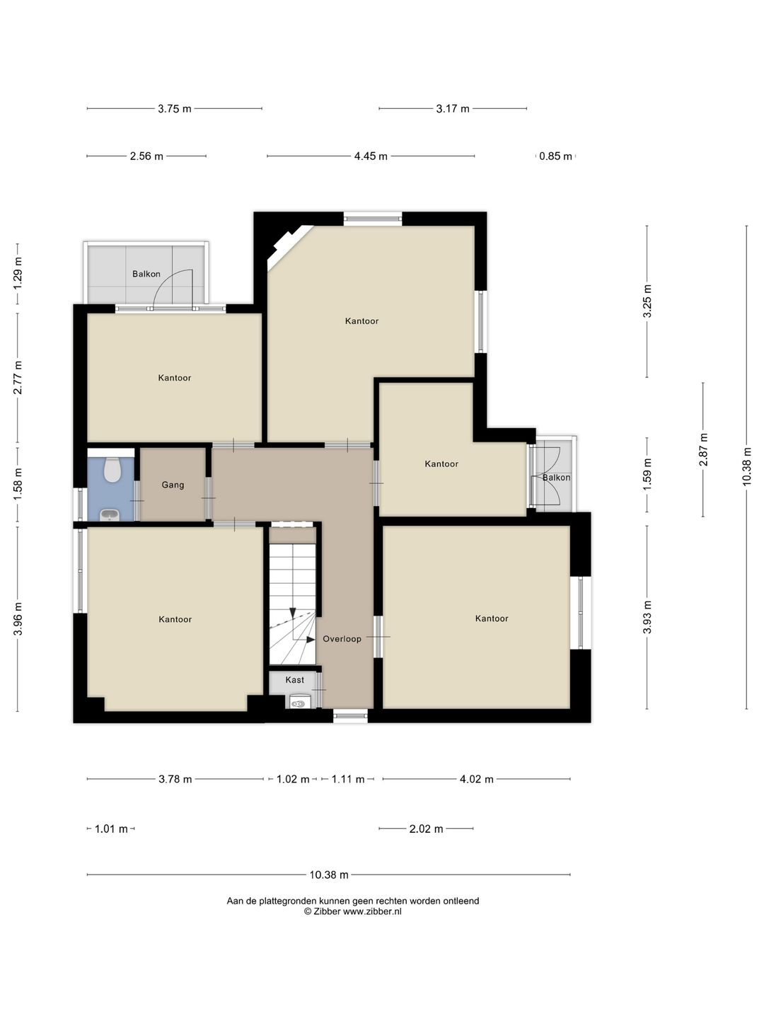 De kantoorvilla wordt in zijn geheel verhuurd en beschikt over in totaal 10 kamers, verdeeld over meerdere verdiepingen. Zowel de begane grond als de eerste verdieping zijn voorzien van toiletgroepen.