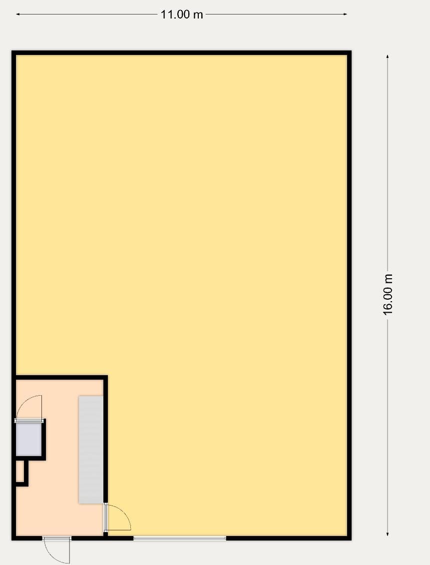 De bedrijfsruimte verkeert in goede staat van onderhoud en wordt momenteel opnieuw geschilderd, waardoor het object bij oplevering een frisse en representatieve uitstraling heeft. De begane grond heeft een oppervlakte van circa 176 m² en bestaat uit een entreehal met toiletruimte en trapopgang naar de verdieping. Vanuit de entree komt u in de bedrijfsruimte, die is voorzien van verlichting en een elektrische overheaddeur. De ruimte is hierdoor ruim inzetbaar voor uiteenlopende bedrijfsdoeleinden.