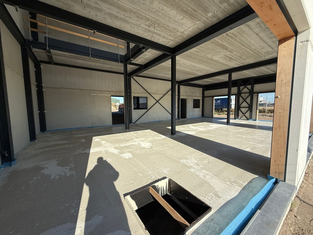 - Lichtstraten, overheaddeuren, krachtstroom, toilet, pantry, airconditioning, inbouwarmaturen en te openen ramen