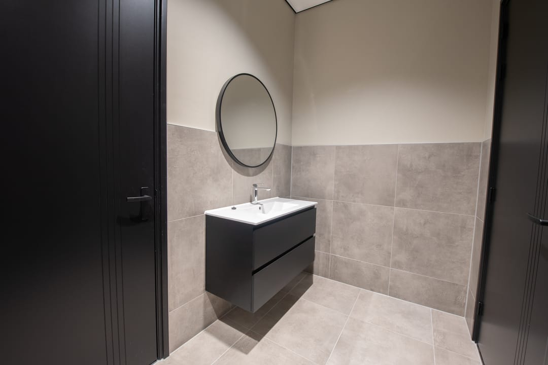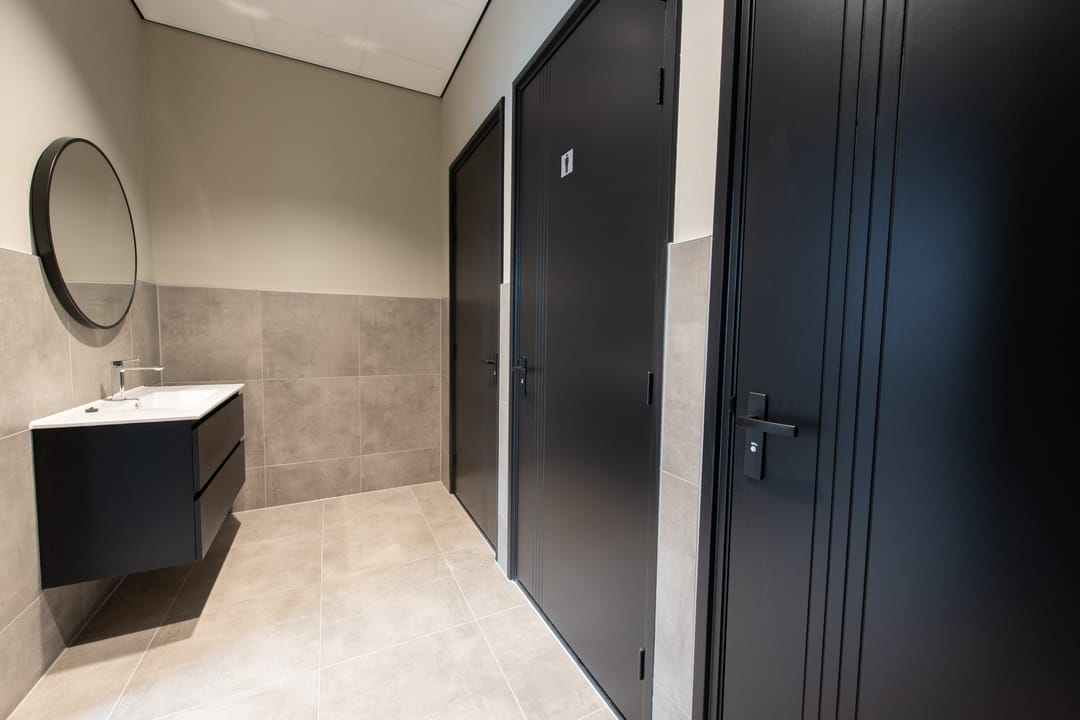 - Toiletruimte met urinoir, herentoilet en damestoilet