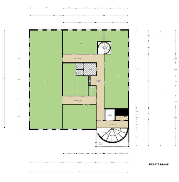 - Liften, kabelgoten, systeemplafond, toilet, pantry, verwarming en kamerindeling