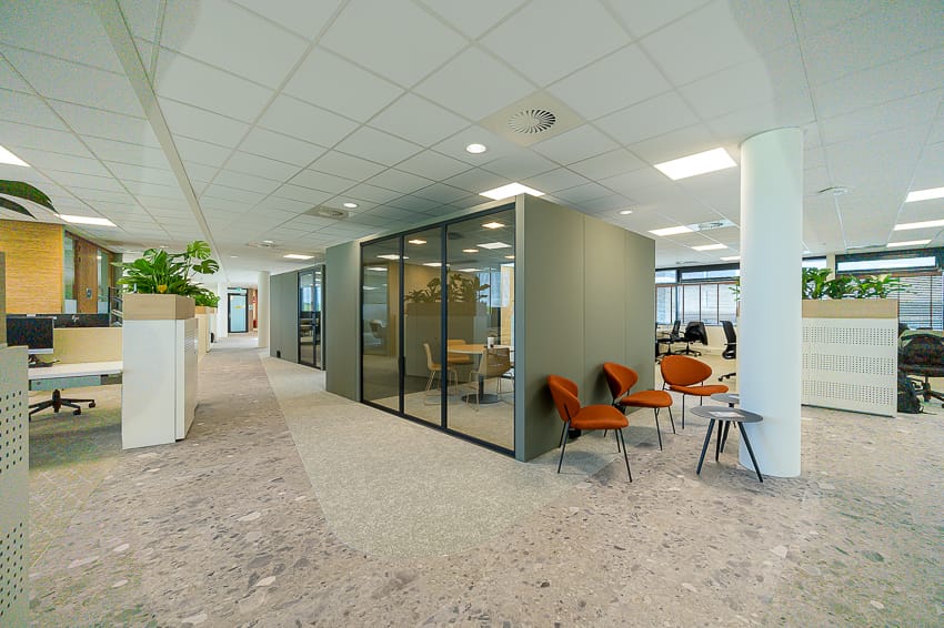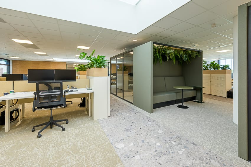 • aanwezige kantoorindeling, bestaande uit vergaderruimten, stilte werkplekken en belcellen;