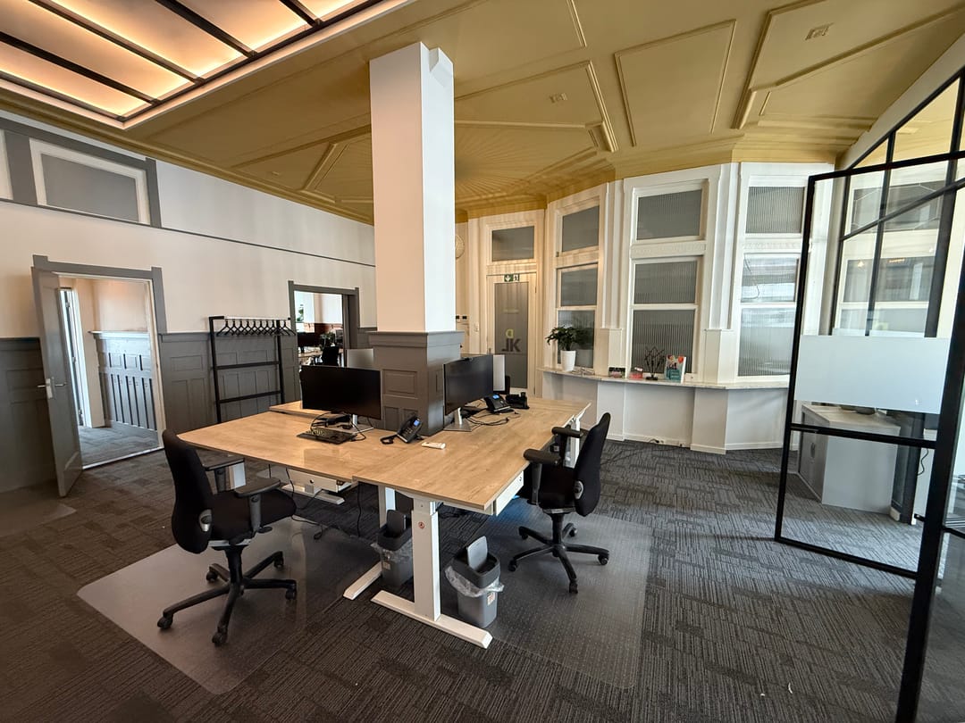 Aan de levendige Groenmarkt bieden wij een bijzondere kantoorruimte aan op de begane grond van een volledig gerenoveerd monumentaal pand. Het geheel beschikt over een oppervlakte van ca. 210 m², verdeeld in meerdere kamers, en maakt onderdeel uit van een pand met daarnaast twee recent gerenoveerde appartementen.