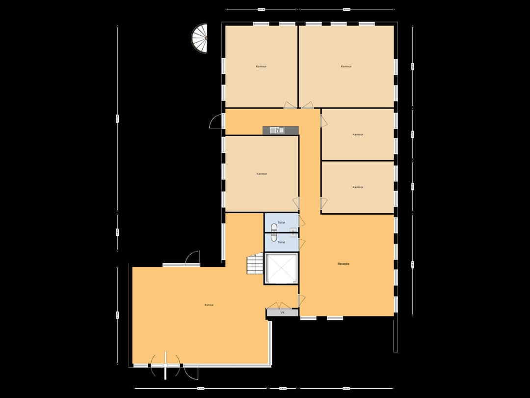 - Airconditioning, mechanische ventilatie, topkoeling, inbouwarmaturen, te openen ramen, kabelgoten, systeemplafond, toilet, pantry, verwarming en kamerindeling
