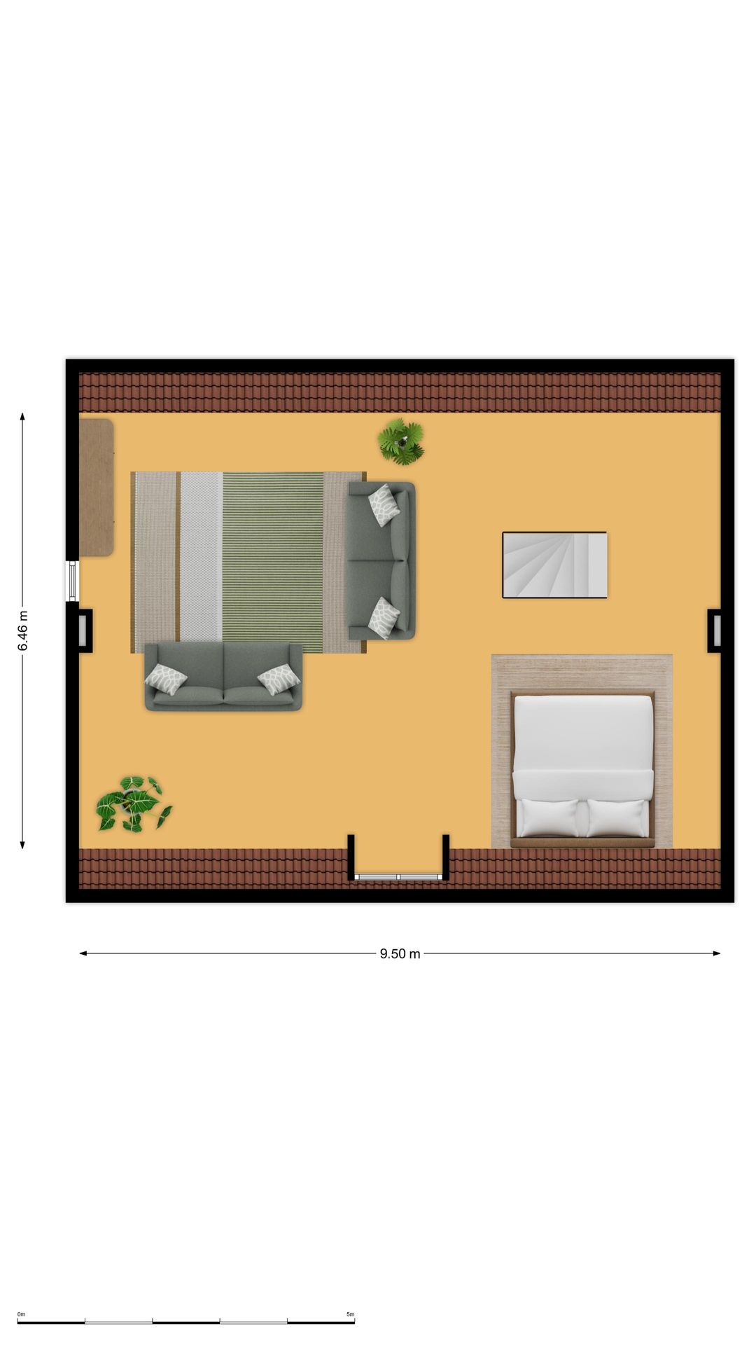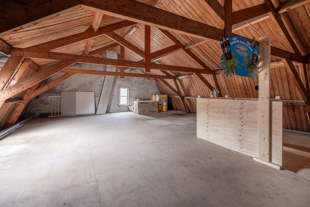 Een open zolderruimte die uitstekend gebruikt kan worden als logeerkamer, atelier, werkkamer of extra slaapkamer. Door de nokhoogte en open indeling is dit een ideale plek voor creatieve doeleinden of een zelfstandige studio.