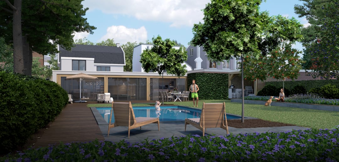 Achter het object ligt een zeer verrassend ruim perceel. Hier bevindt zich nu een royaal parkeerterrein die te bereiken is vanaf de Lindelaan, geschikt voor circa 20 auto's. Voor wie droomt van meer groen, biedt deze plek echter ook volop mogelijkheden om een sfeervolle tuin aan te leggen — denk aan een beschut terras, een weelderig gazon of een speelse combinatie van groen en zitplekken. Met een beetje visie is dit uit te bouwen tot een volwaardige buitenruimte die het wooncomfort versterkt — een impressie van een mogelijke tuininrichting is opgenomen tussen de foto's. Daarmee is het pand niet alleen geschikt voor zakelijk gebruik of bezoekersontvangst, maar juist ook voor toekomstige bewoners die waarde hechten aan buitenruimte, privacy én flexibiliteit.