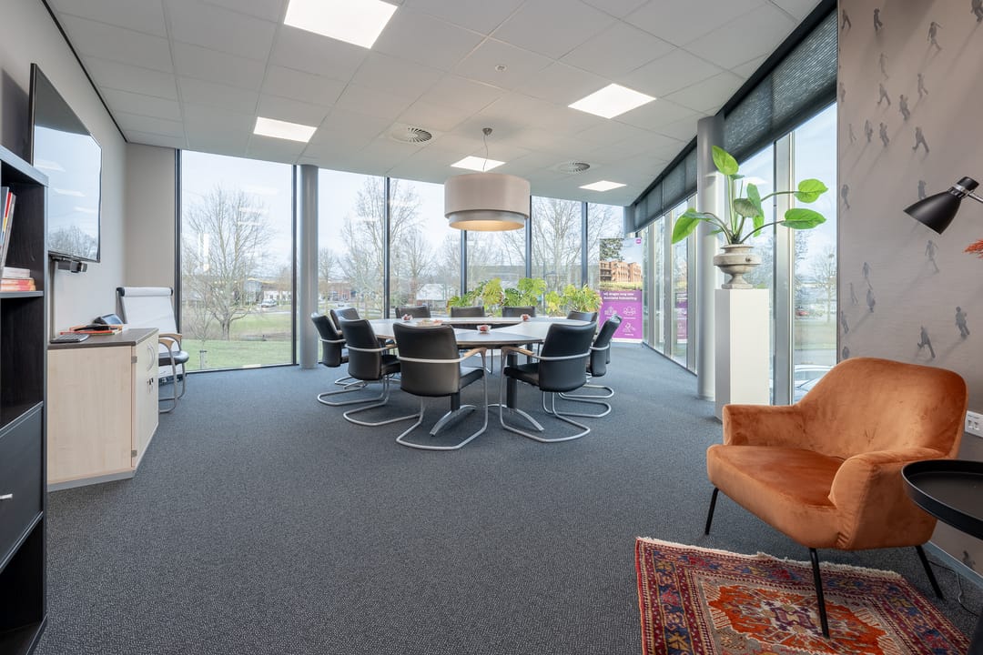 Het kantoorpand ligt op bedrijventerrein Heestereng in Ede. De op- en afritten van de A12 zijn binnen ca. 5 minuten rijafstand bereikbaar en ook de A30 richting Barneveld en de A1 ligt op korte afstand. Daarmee is de locatie vlot bereikbaar vanuit de regio Foodvalley en de Randstad.