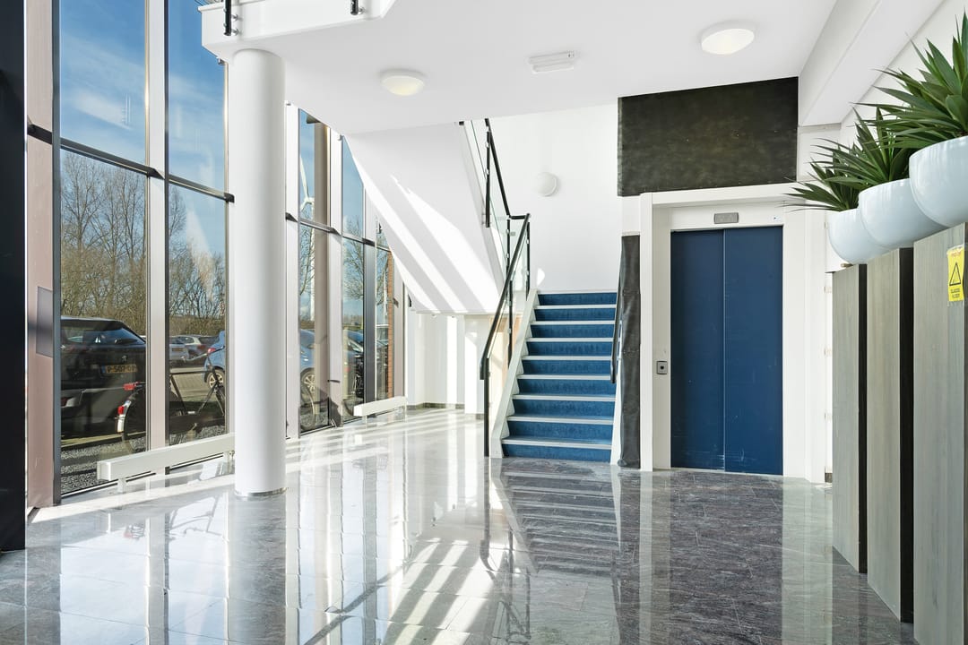 Beschikbare kantoorruimte bevindt zich op de tweede verdieping van het aangename kantoorgebouw.