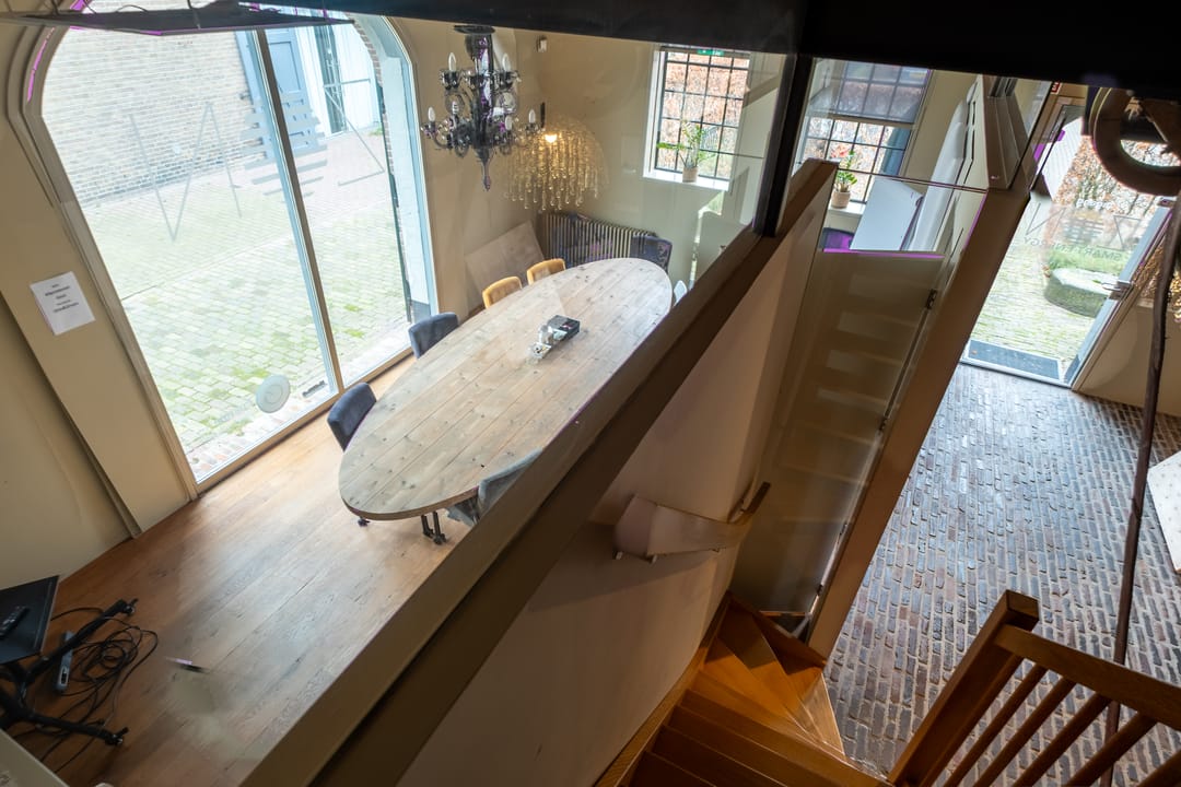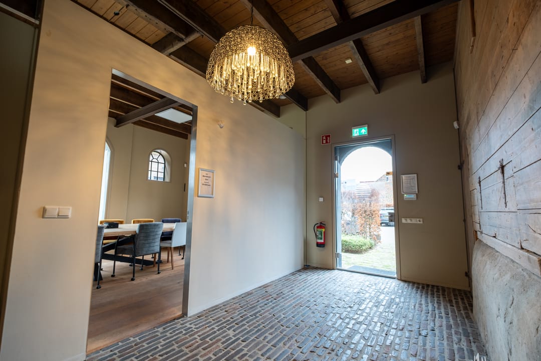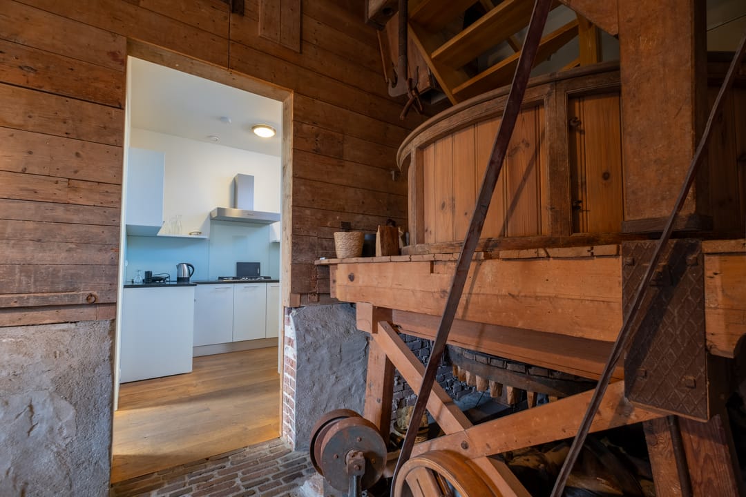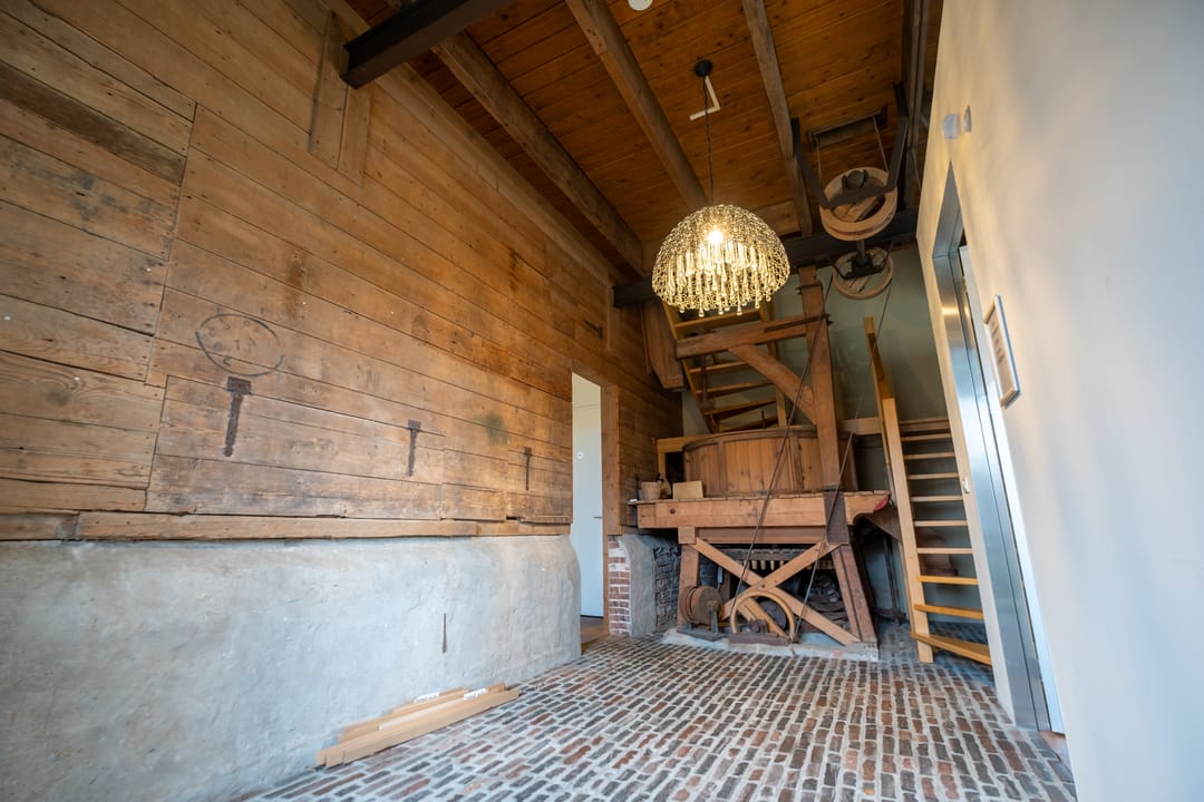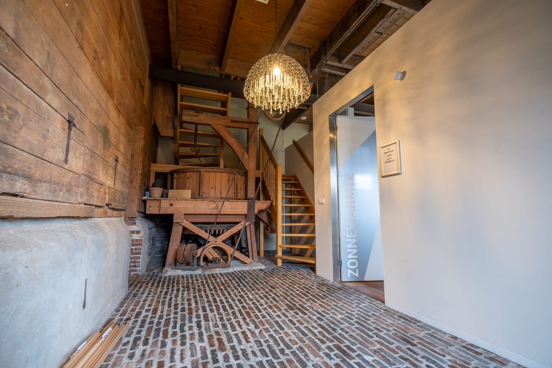 Bij binnenkomst word je onmiddellijk overweldigd door de originele bakstenen klinkervloer met aan het eind daarvan de monumentale maalstoel en via de hal krijg je toegang tot de verschillende ruimtes.