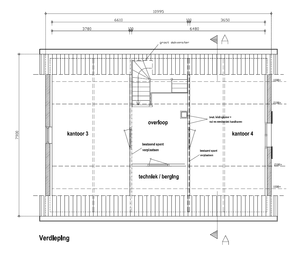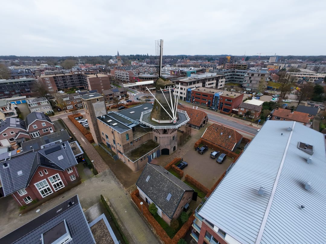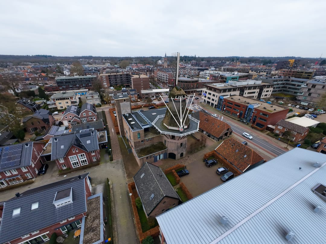 Eenmaal met de trap op de verdieping gekomen passeer je het bovenste deel van het monumentale takelmechanisme van de maalstoel. Aan de royale overloop liggen links en rechts een tweetal ruime kamers van circa 18 m² en 18,5 m² voor verschillende vormen van gebruik. Daarnaast ook een tweede toilet en een technische ruimte.