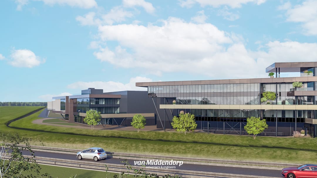 Het nieuw te bouwen bedrijfscomplex zal onder meer voorzien zijn van: