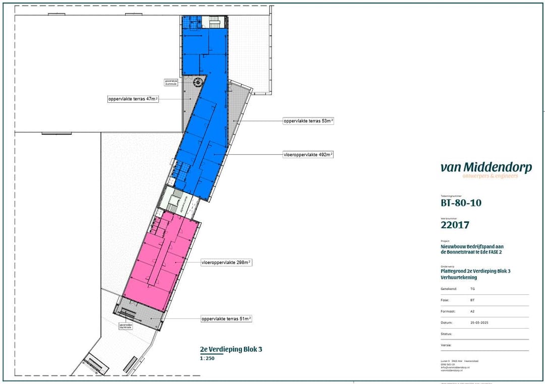 • Kantoorruimte tweede verdieping: circa 790 m² kantoor- en overige ruimtes alsmede circa 151 m² terras;