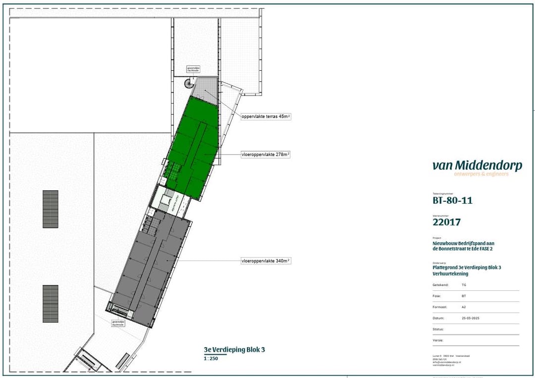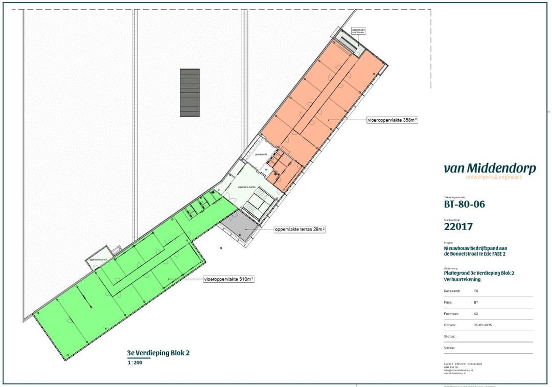 • Kantoorruimte derde verdieping: circa 868 m² kantoor- en overige ruimtes alsmede circa 29 m² terras;
