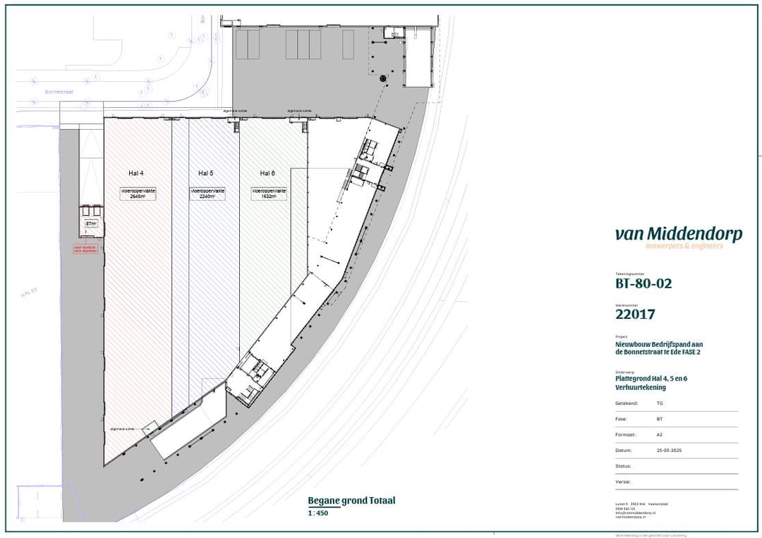 • Bedrijfshal 4: 2.732 m² bedrijfsruimte;