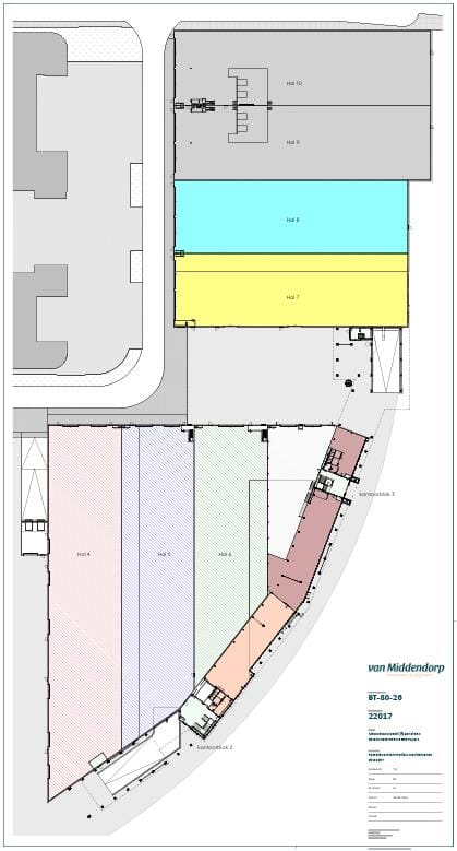 • Bedrijfshal 7: circa 1.760 m² bedrijfsruimte alsmede 108 m² kantoor- en overige ruimtes op de eerste verdieping;