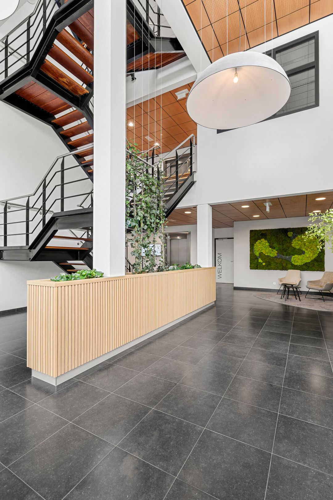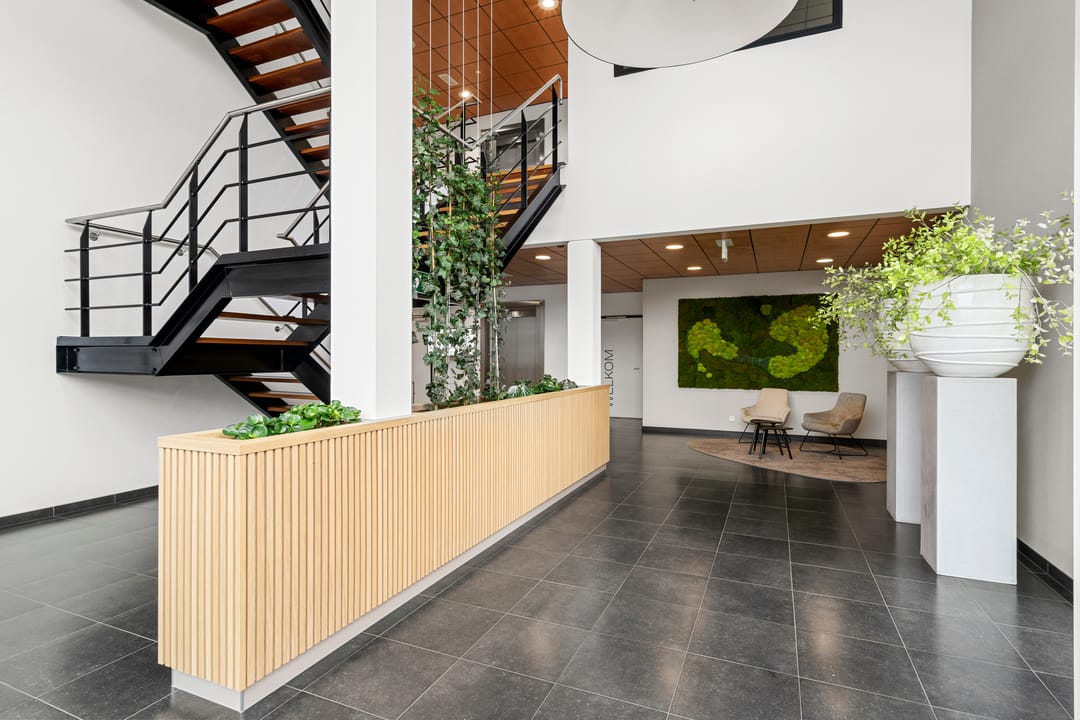 • representatieve, gezamenlijke entree met natuurstenen vloer;