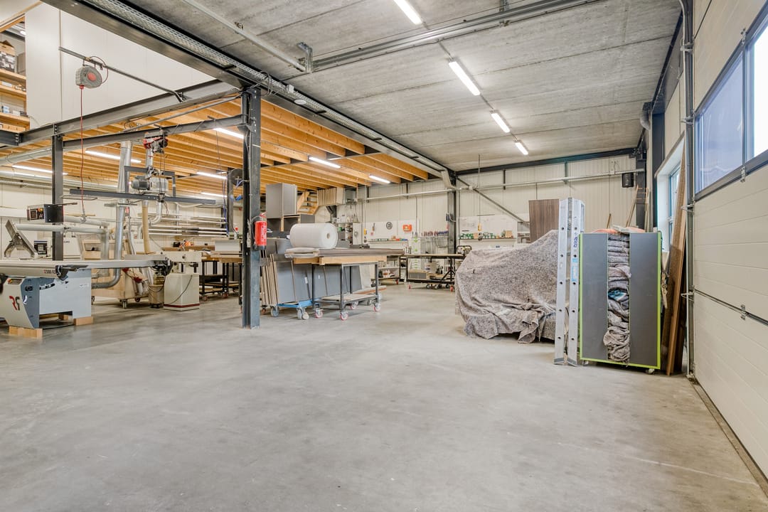 - Airconditioning, mechanische ventilatie, overheaddeuren, krachtstroom, betonvloer, toilet en pantry