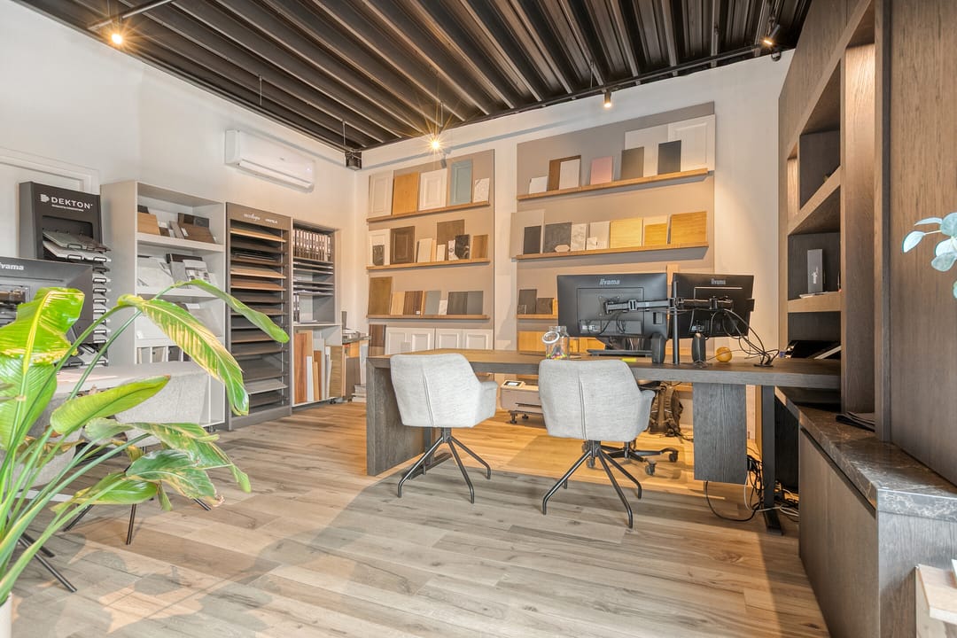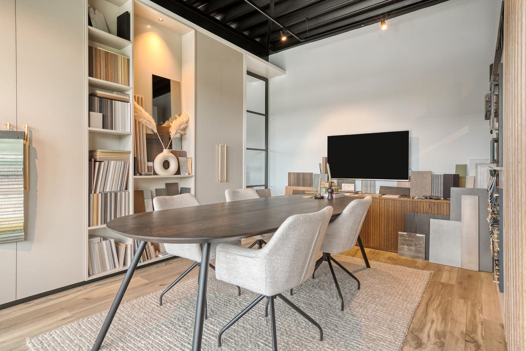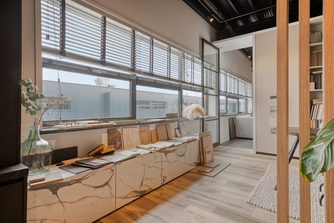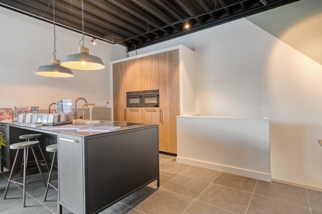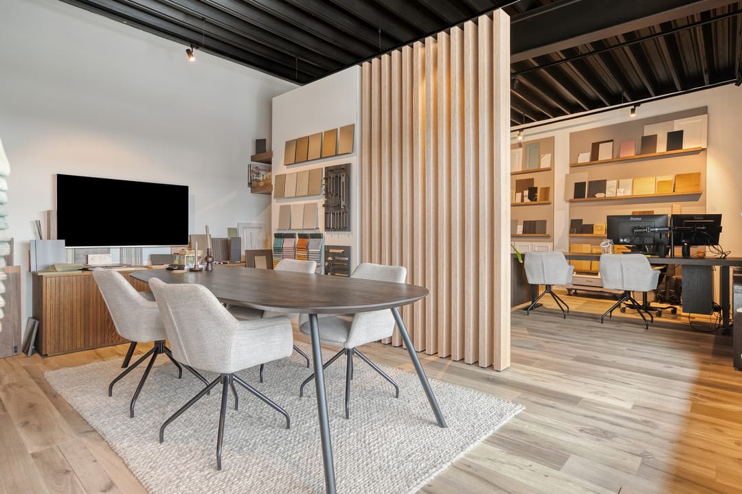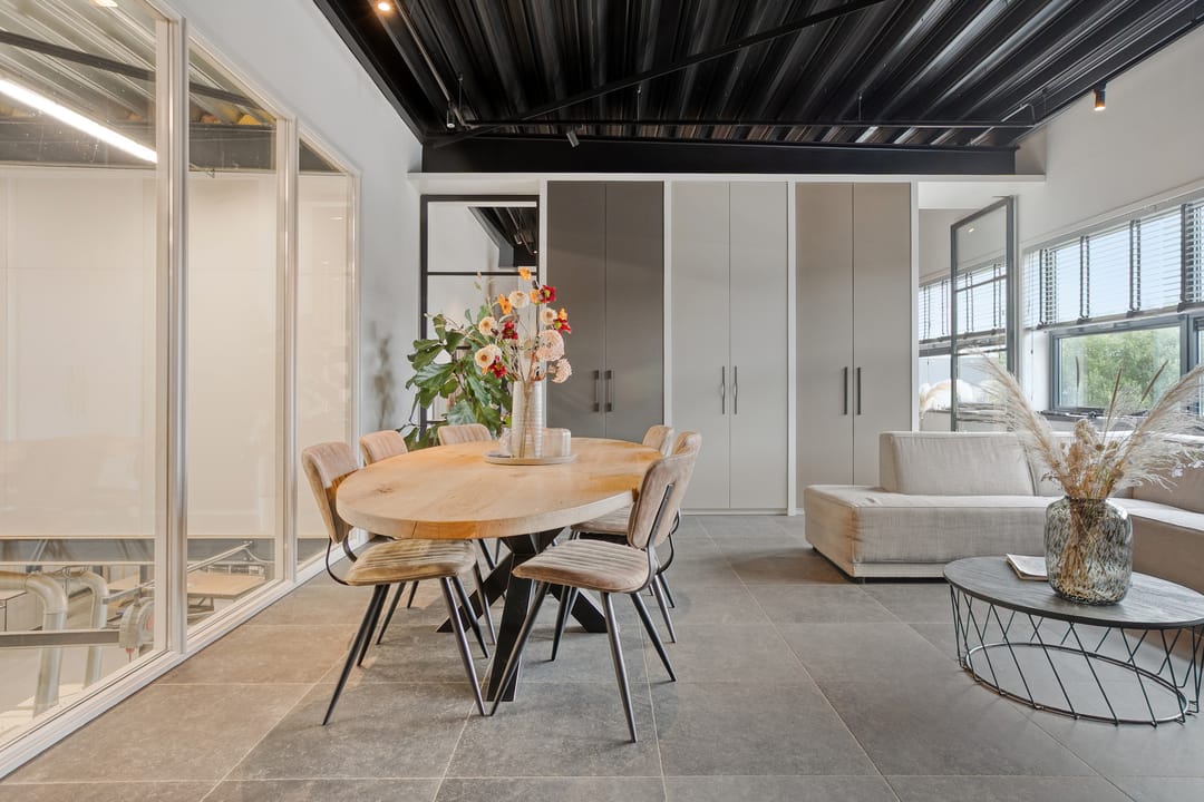 o Stijlvolle plavuizenvloer, met ruimte voor een grote tafel – ideaal voor ontvangst van klanten