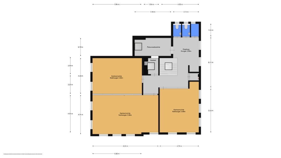 Het kantoor is recent o.a. voorzien van nieuwe airco’s, nieuwe kabelgoten, netwerk bekabeling, nieuwe toiletten (2 stuks), nieuwe binnendeuren, etc. Het geheel is inwendig nieuw gestukadoord en geschilderd, etc.