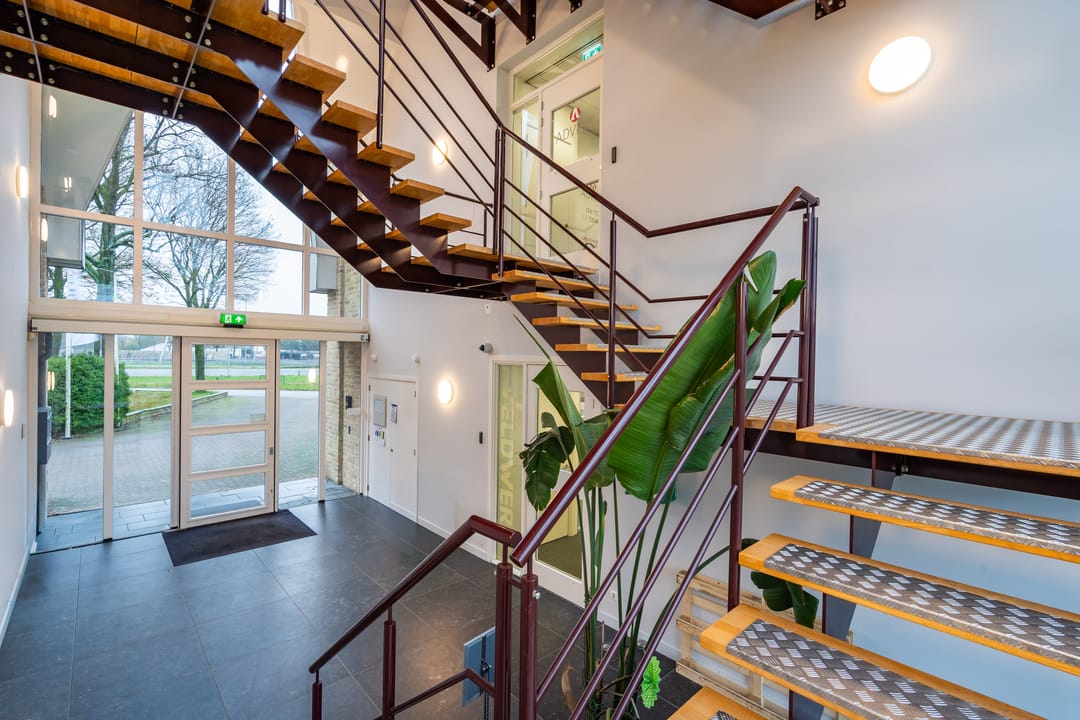 De entree van het kantoorgebouw wordt gedeeld met twee andere huurders binnen dit deel van het kantoorgebouw. Aan de achterzijde van het pand is een gedeeld buitenterras aanwezig, wat bijdraagt aan een prettige werkomgeving.
