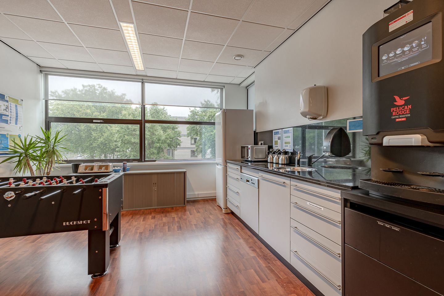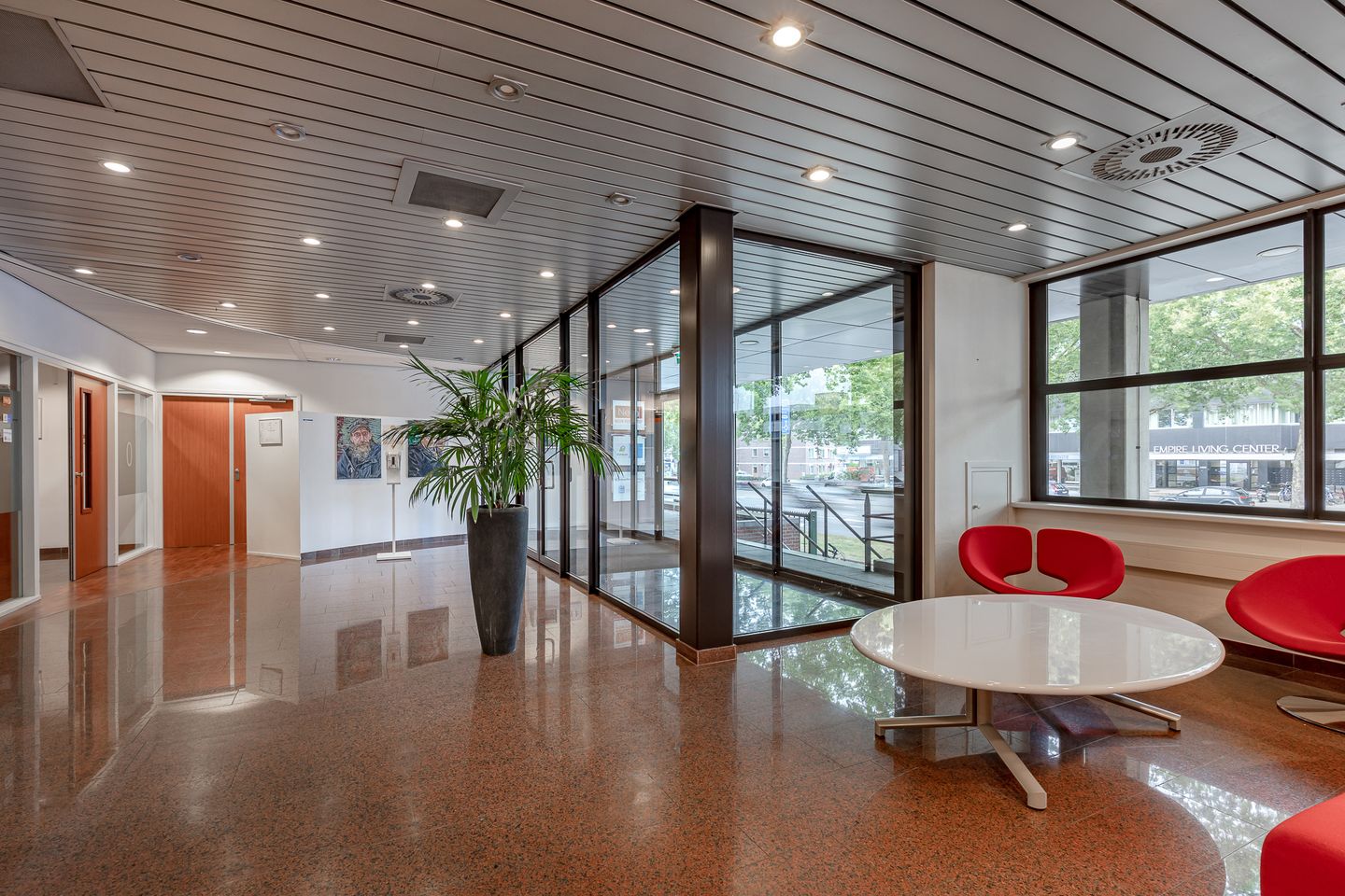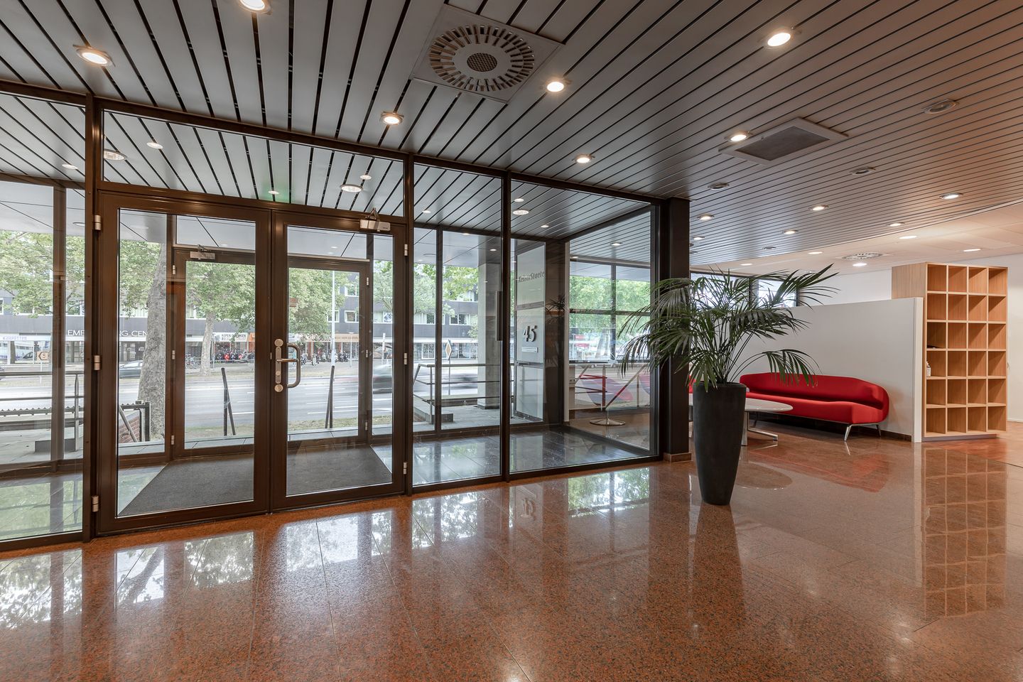 De mogelijkheid bestaat om de gemeenschappelijke lunchruimte / grand café met spoelkeuken exclusief te huren in combinatie met de 1e kantooretage. In dat geval bedraagt het totale verhuurbare metrage circa 184 m² begane grond (grand café en spoelkeuken), circa 974 m² op de 1e etage, circa 21 m² in de kelder alsmede een aandeel van circa 112 m² in de gemeenschappelijke ruimten van het gebouw, derhalve circa 1.291 m².