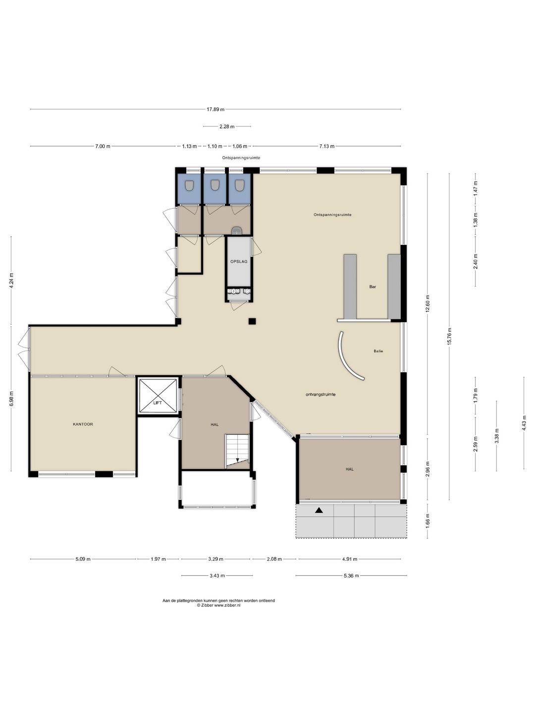Toegang tot het trapportaal en tevens een lift naar de verdiepingen.