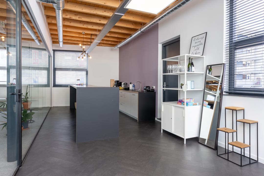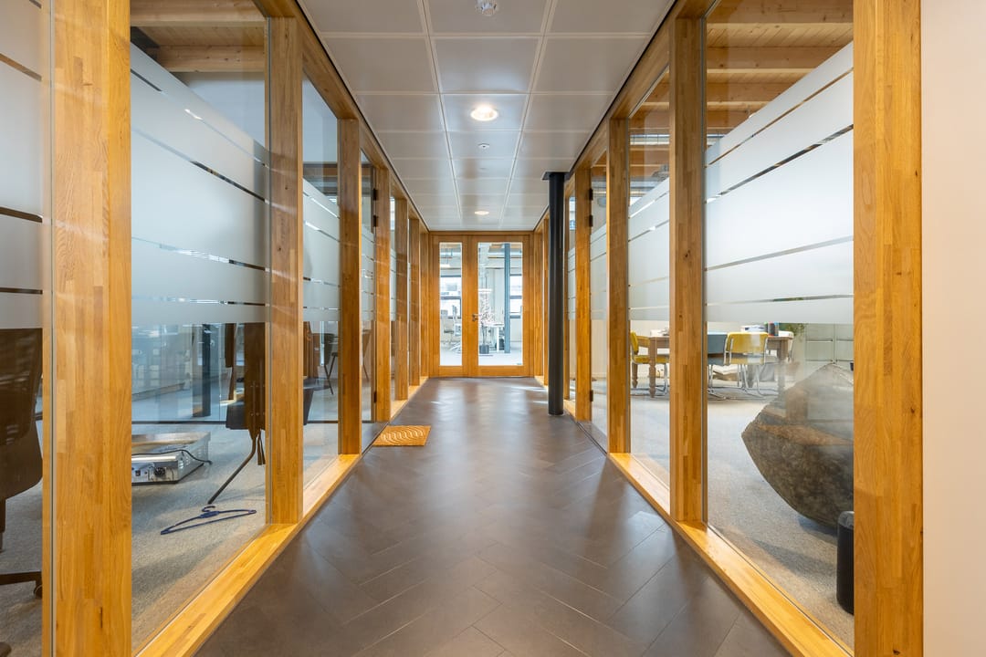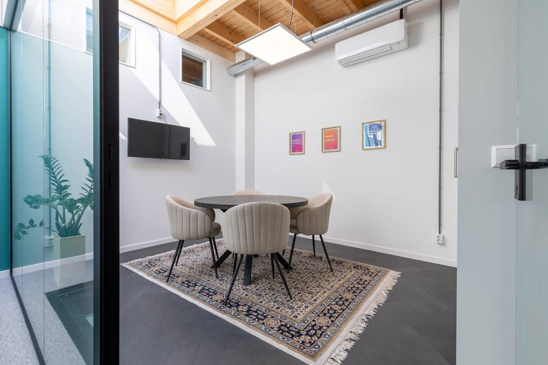 - huidige kamerindeling met systeem scheidingswanden met afsluitbare binnendeuren en glazen wanden;