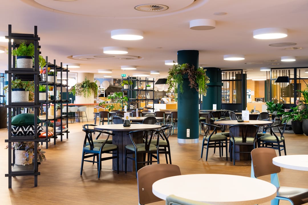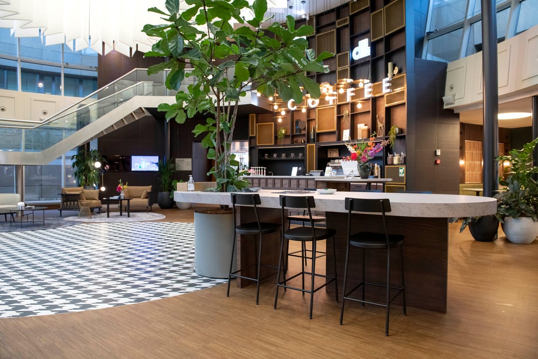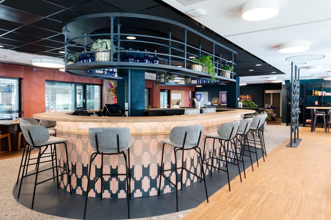 Het gebouw beschikt over veel verschillende gedeelde faciliteiten zoals een luxe koffiebar, restaurant met warme en koude maaltijden, grote bar en borrelruimte en vergaderruimte (16 pers.).