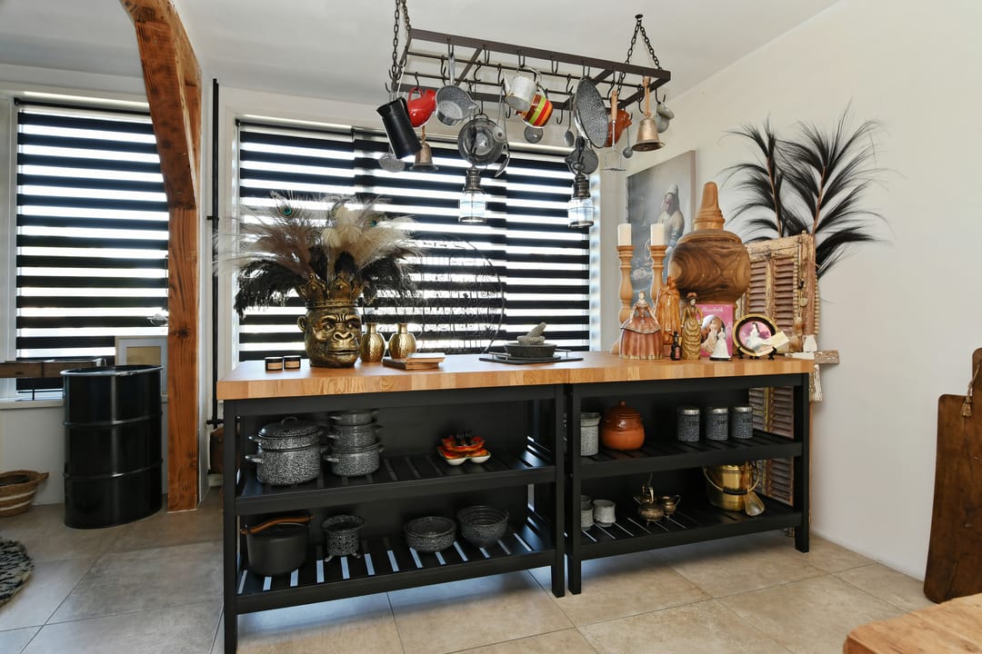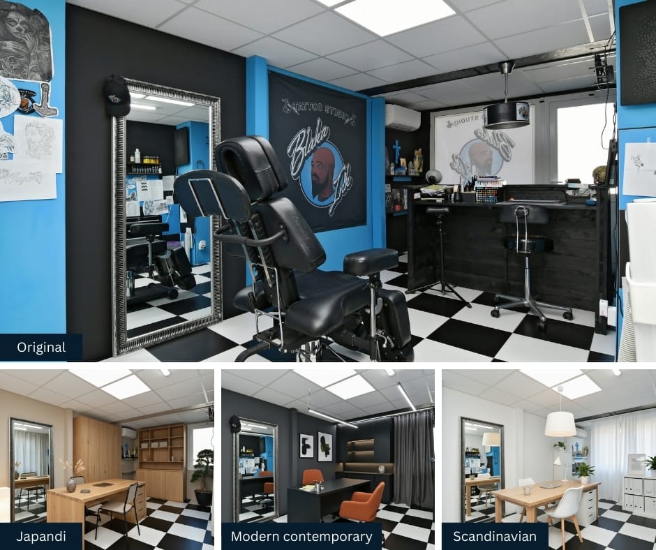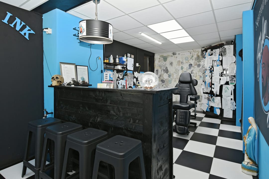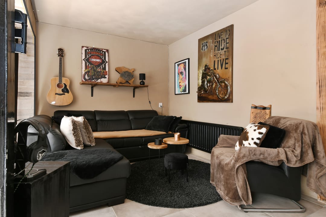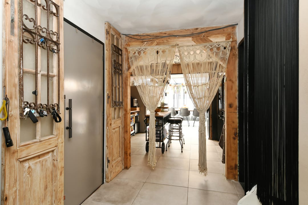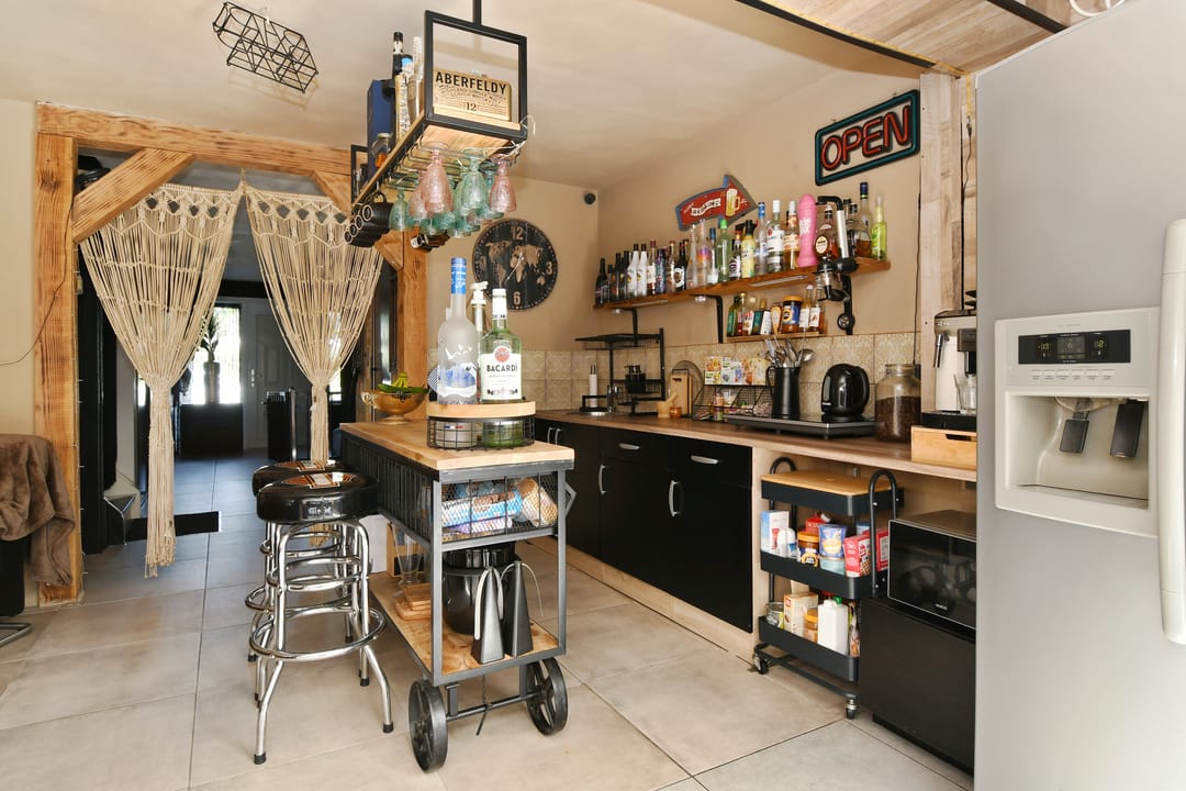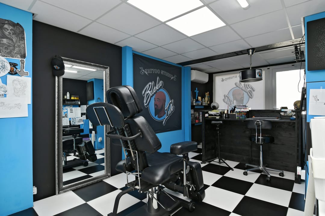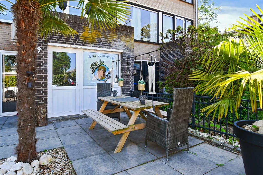 De werkkamer (17 m2), in de voormalige garage, is nu in gebruik als tattoostudio. De ruimte is voorzien van airco, deur naar buiten en een tegelvloer. Deze ruimte is ideaal voor bijvoorbeeld een kantoor/praktijk aan huis of om weer te herstellen tot garage.