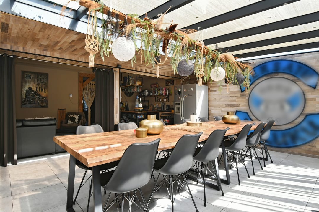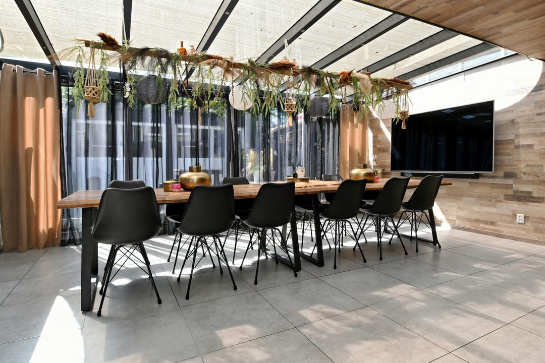 - Woonkamer met grote serre en open keuken op de begane grond;
