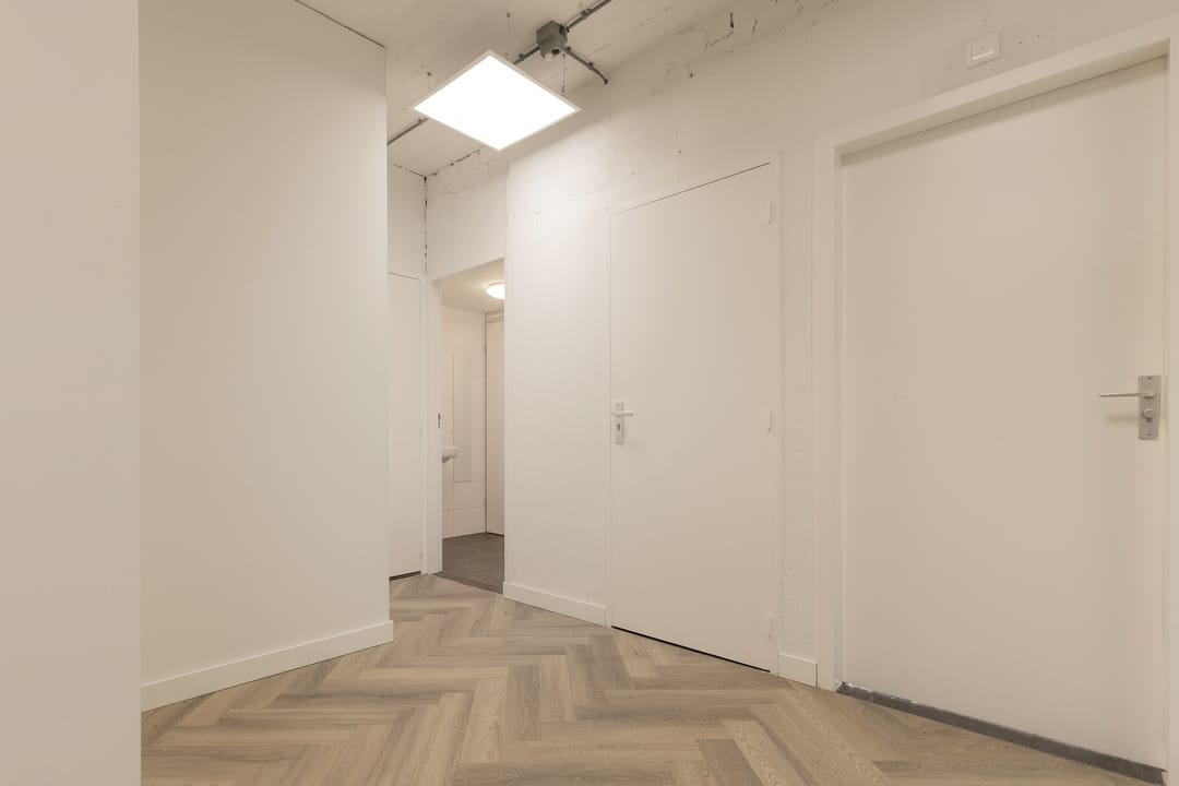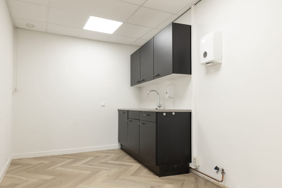 De etage is volledig vernieuwd en toegankelijk per trap én lift. Het geheel is afgewerkt met een moderne visgraat vloer, energiezuinige LED-verlichting, een nette pantry, een representatieve spreekkamer en aparte dames- en herentoiletten. Wifi is aanwezig en de spreekkamer is eenvoudig online te reserveren voor gebruik.