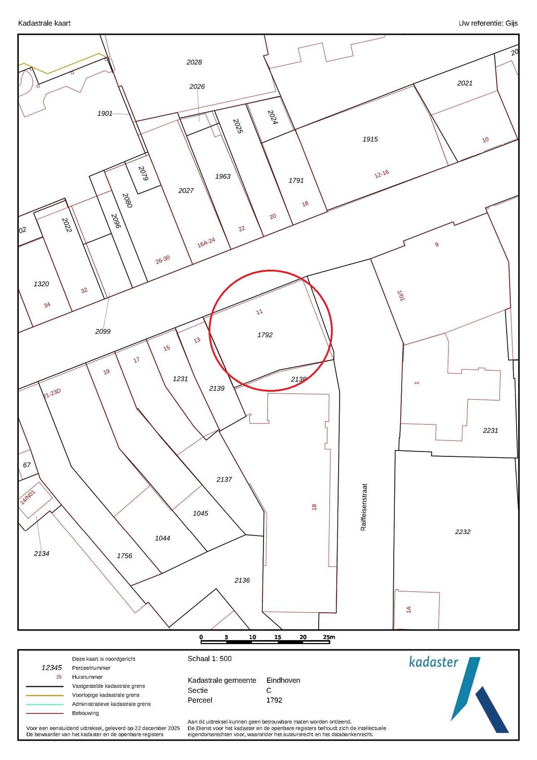 Kadastrale gegevens Dommelstraat 11 te Eindhoven: