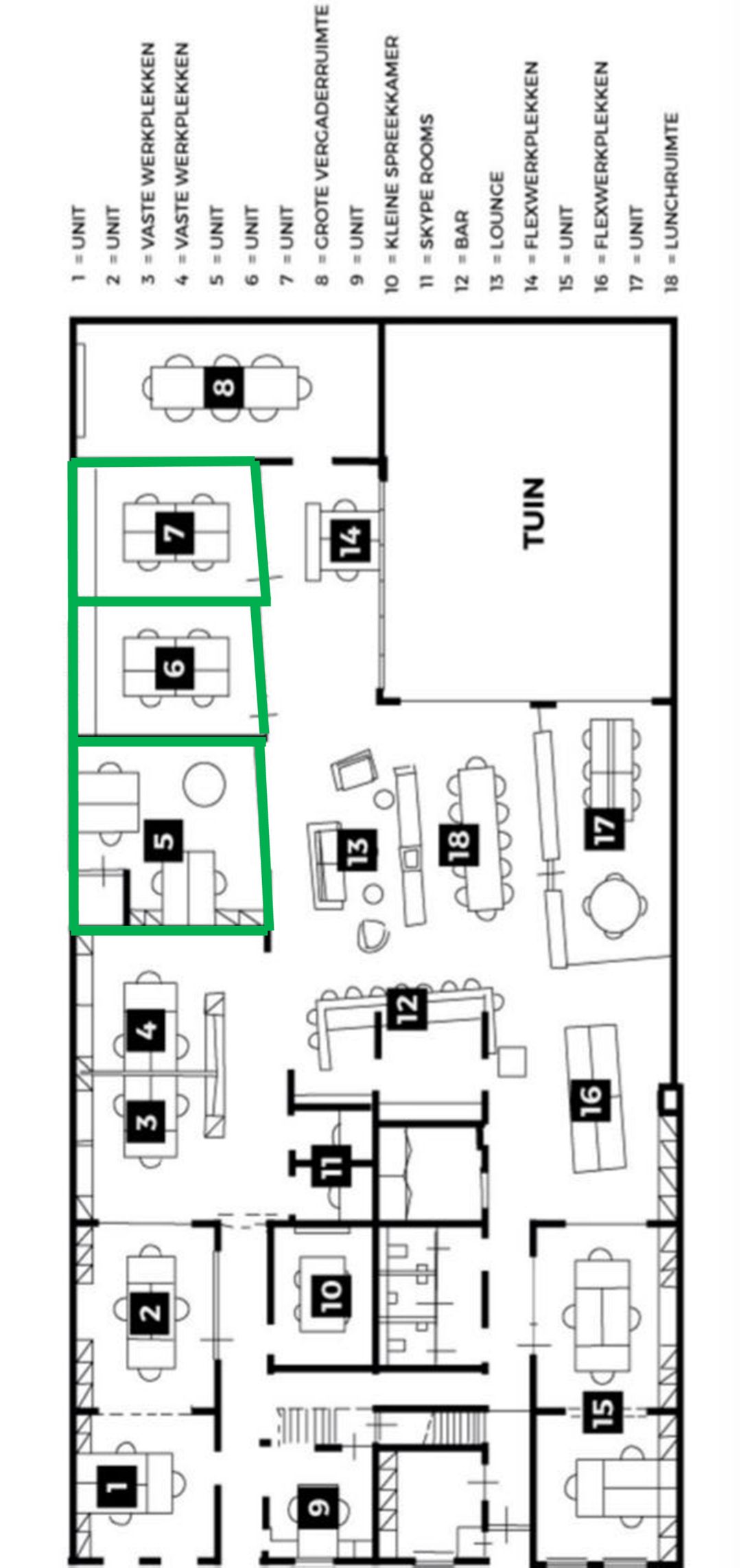 *Beschikbare ruimtes kunnen gecombineerd worden gehuurd.